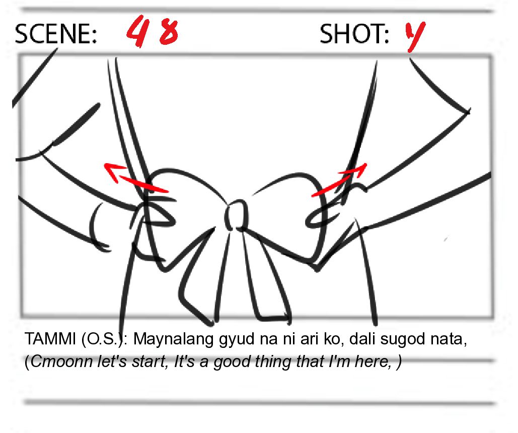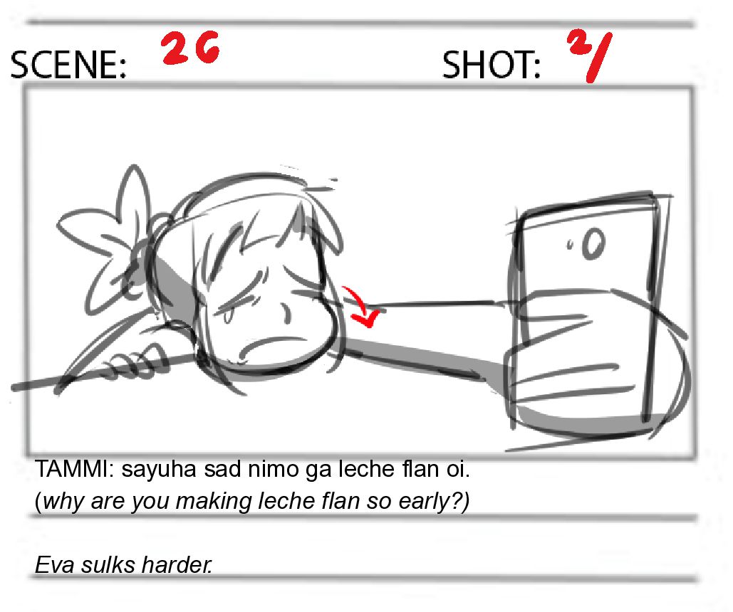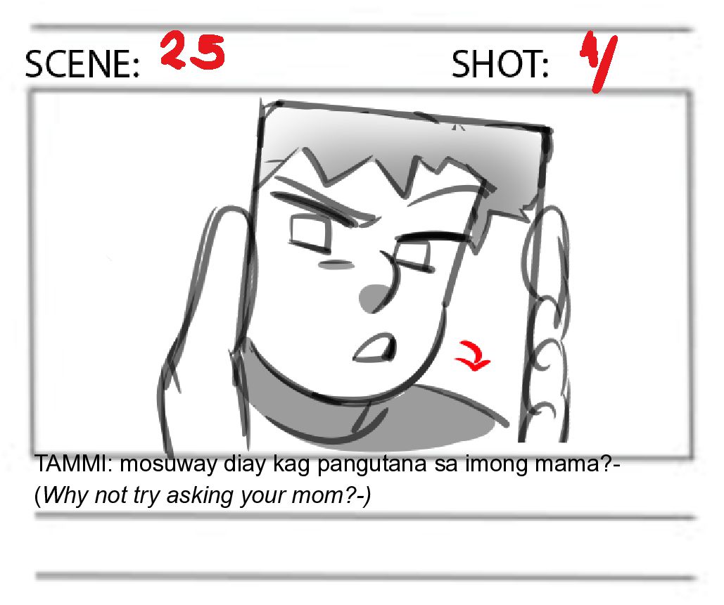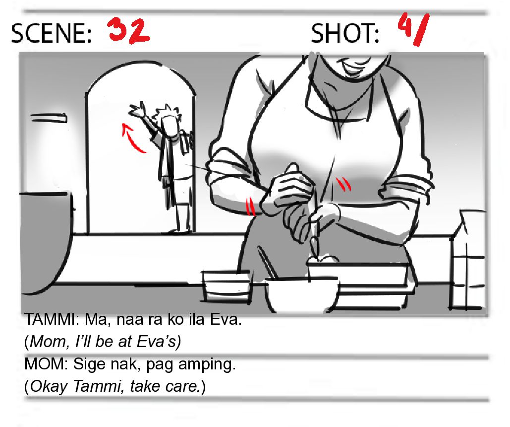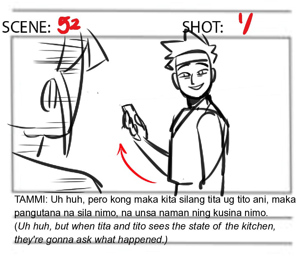 who is known as Tam or Tammi. TAMMI: Hoy Eva, okay raka diha? naka kita kog asu sa inyo bag o lang- (Hey Eva, you okay there? I just saw smoke at your place just now-)