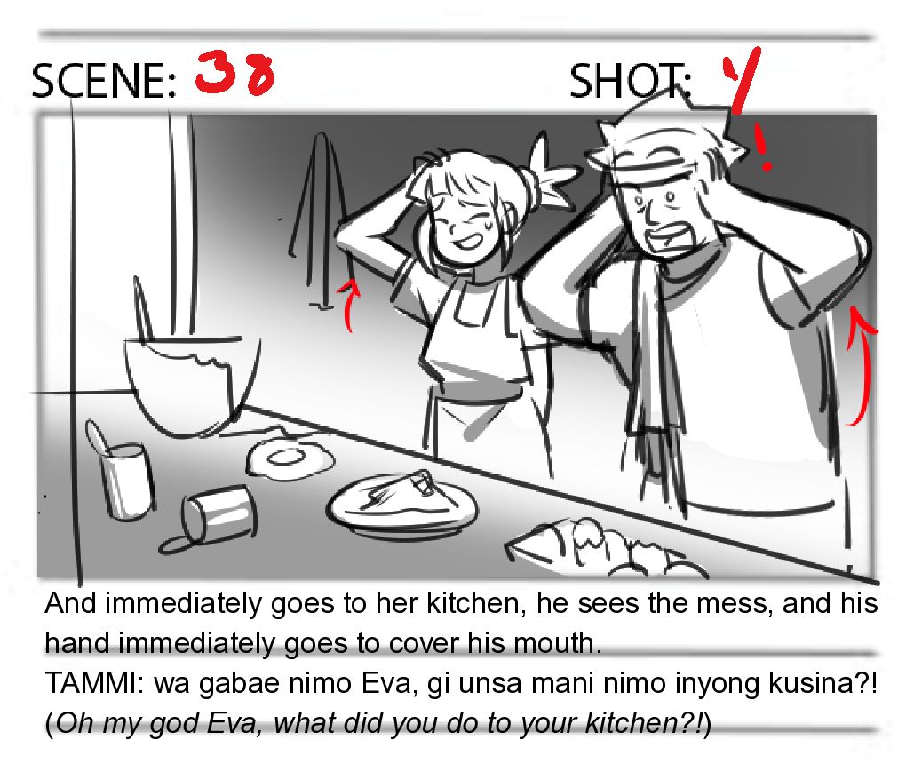 and his hand immediately goes to cover his mouth. TAMMI: wa gabae nimo Eva, gi unsa mani nimo inyong kusina?! (Oh my god Eva, what did you do to your kitchen?!)
