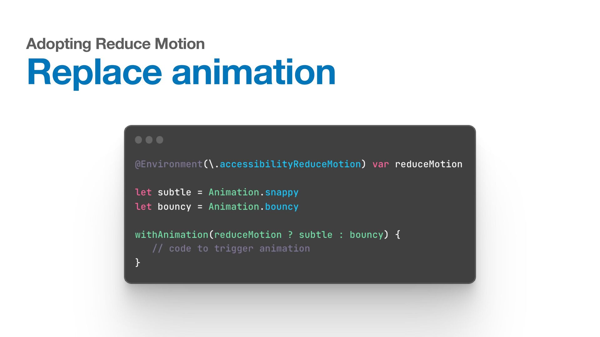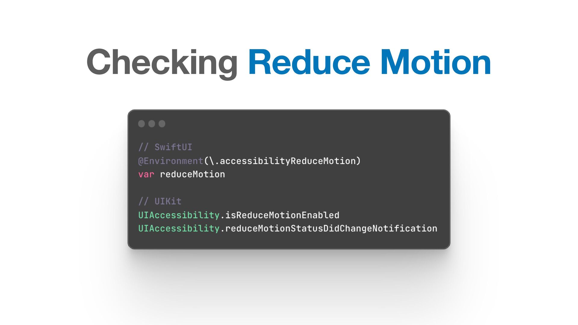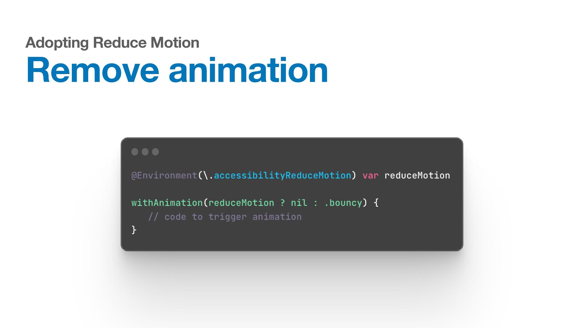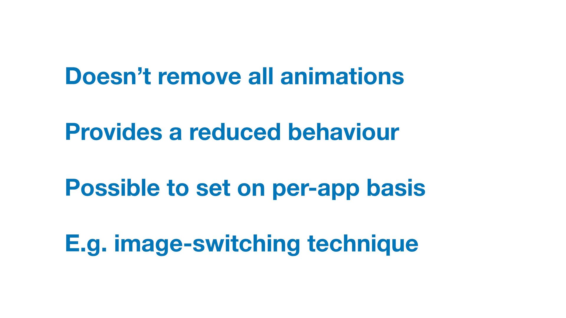Labels Supporting VoiceOver in your app Motion sickness: Nausea Creating usability with motion Understanding the intuition of easing Reduce screen motion on Apple devices Responsive design for motion