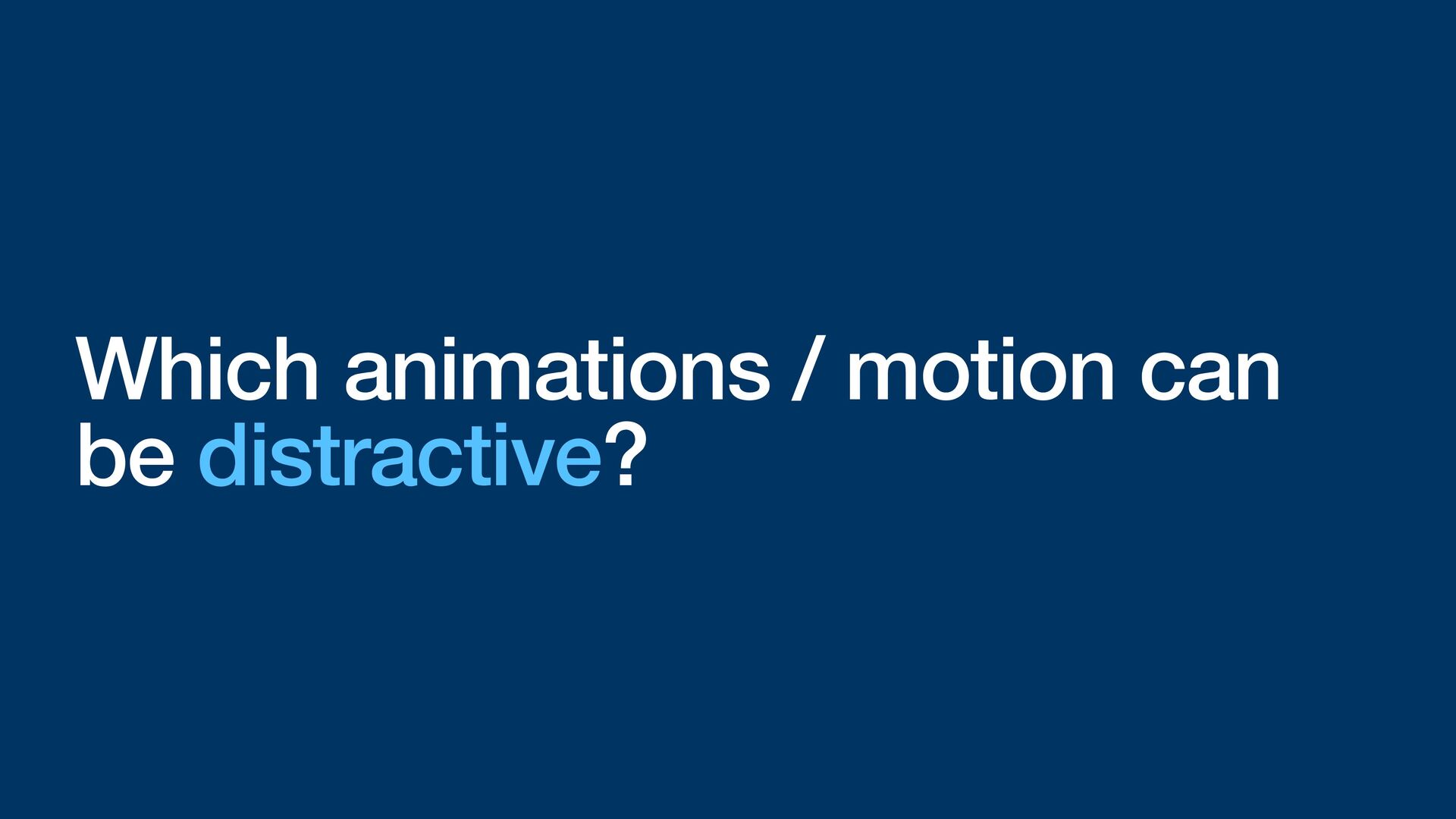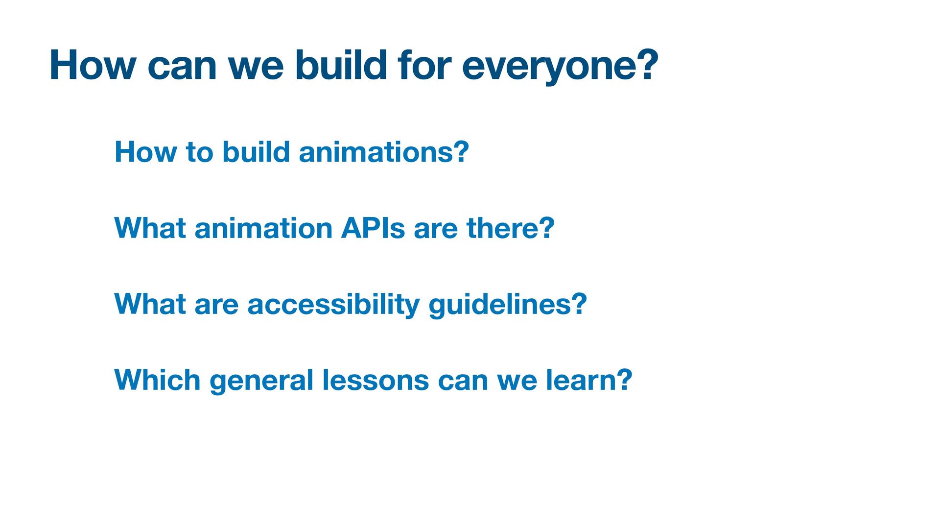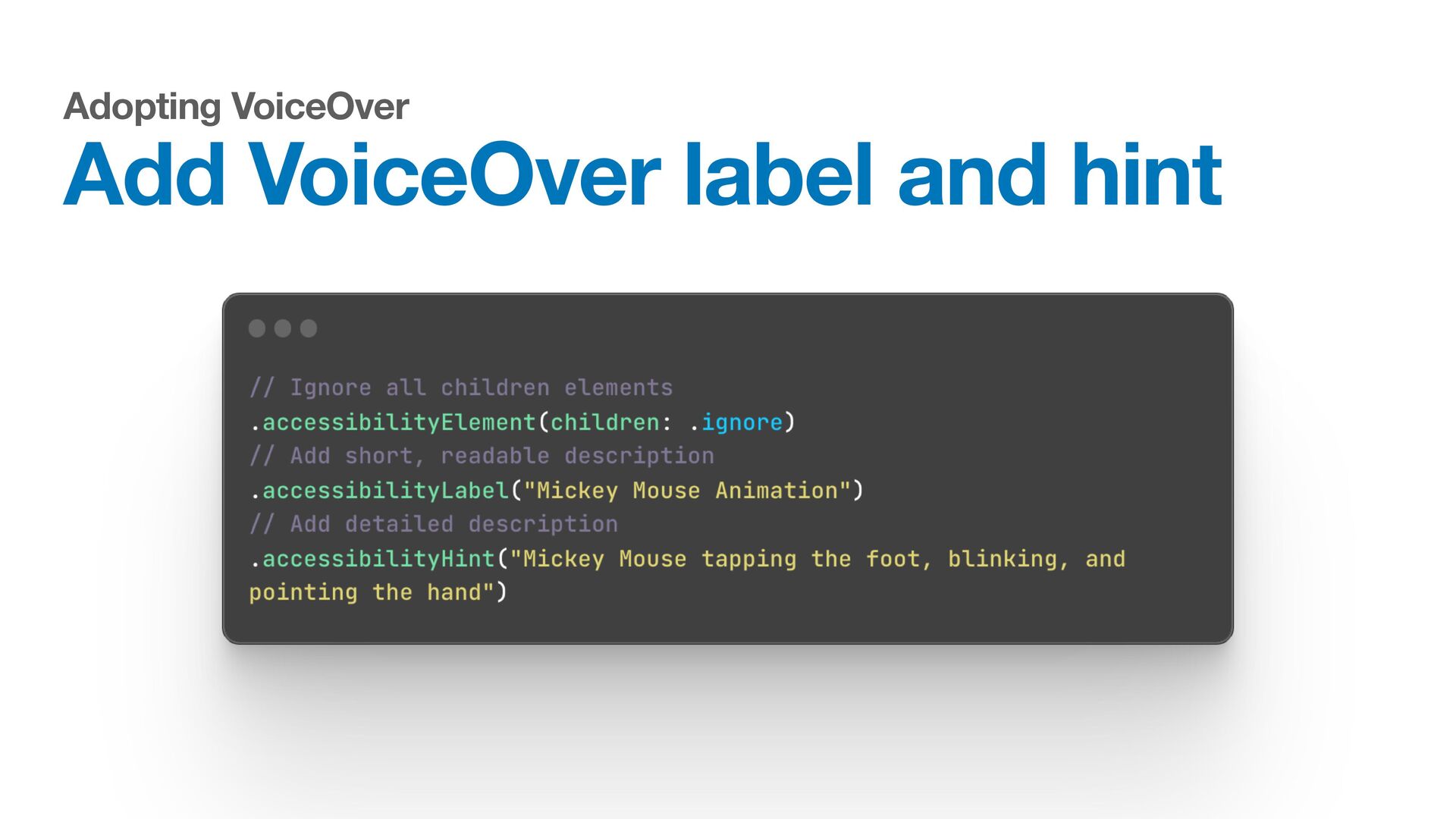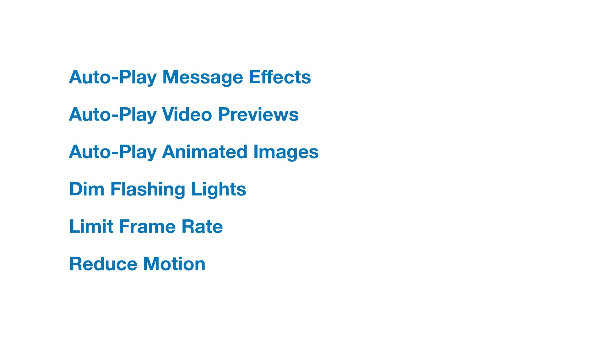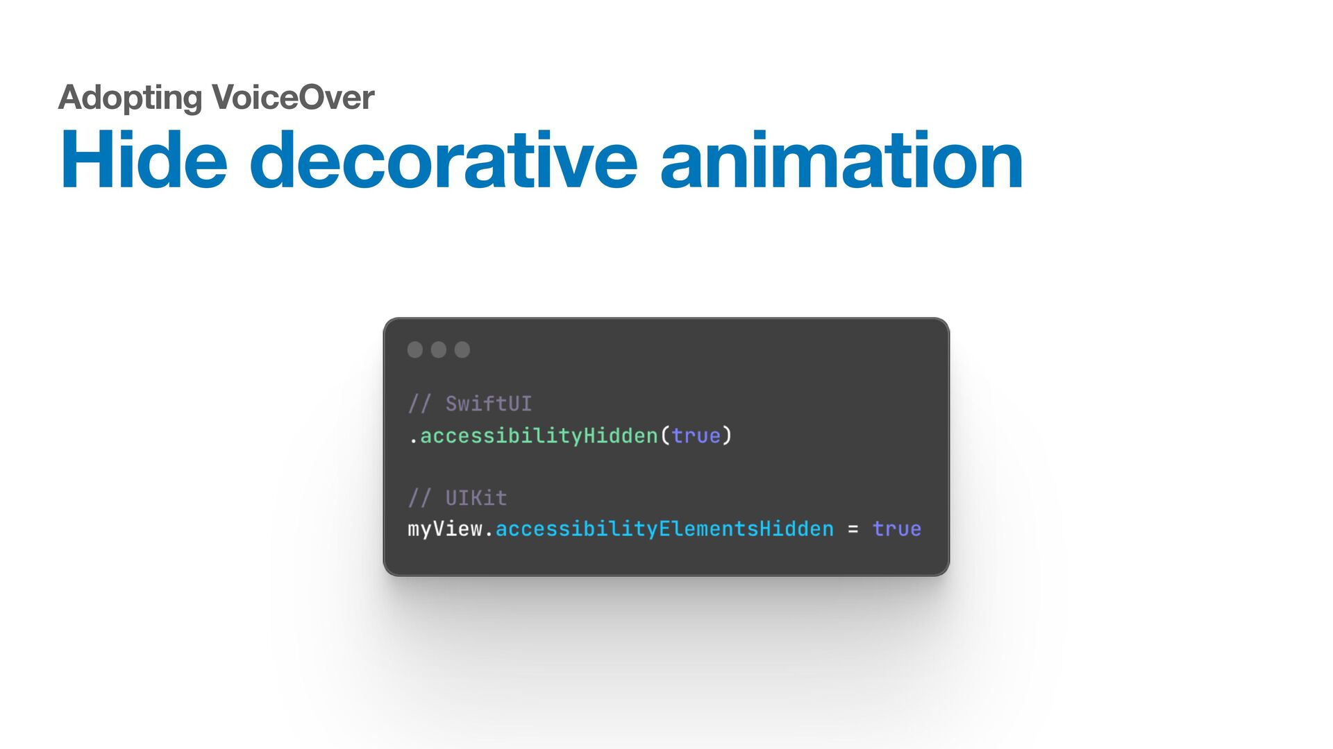 Labels Supporting VoiceOver in your app Motion sickness: Nausea Creating usability with motion Understanding the intuition of easing Reduce screen motion on Apple devices Responsive design for motion