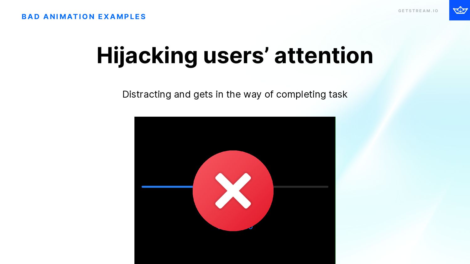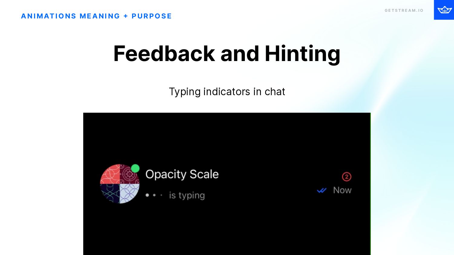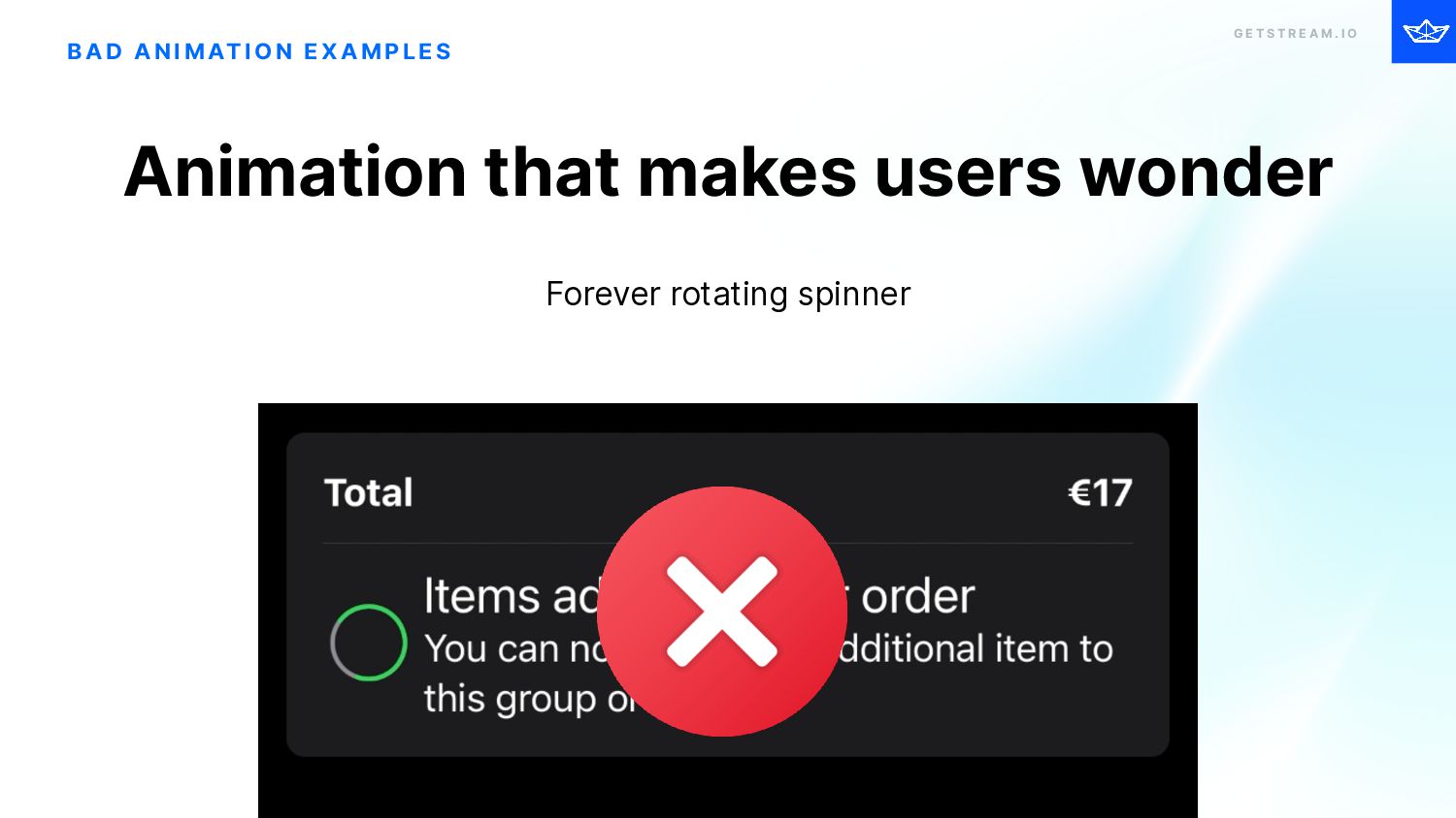 I O Convey information more effectively Do not keep users waiting longer Example: Loaders should not run forever Food delivery example Animations should be nimble and precise