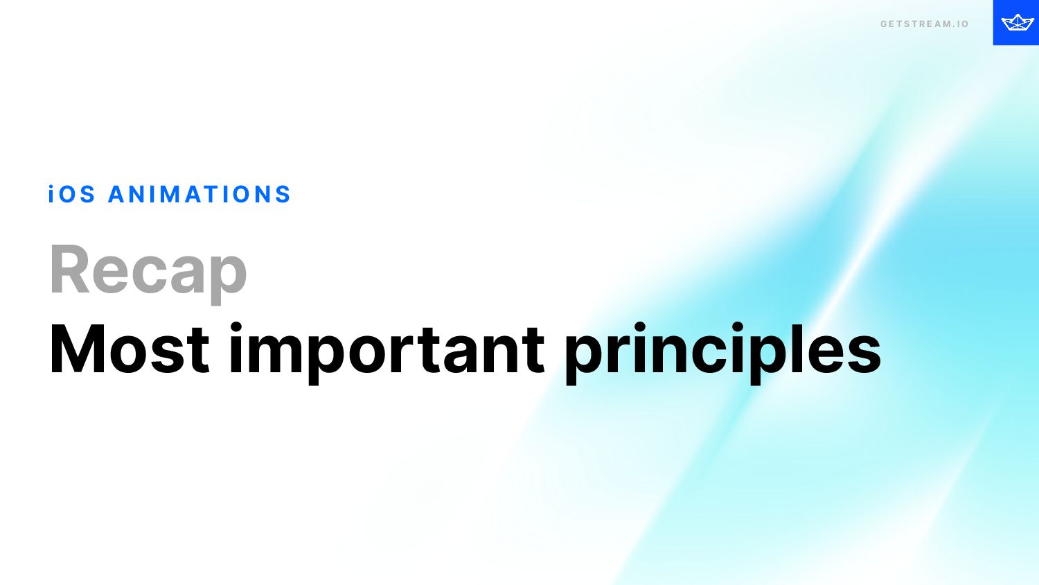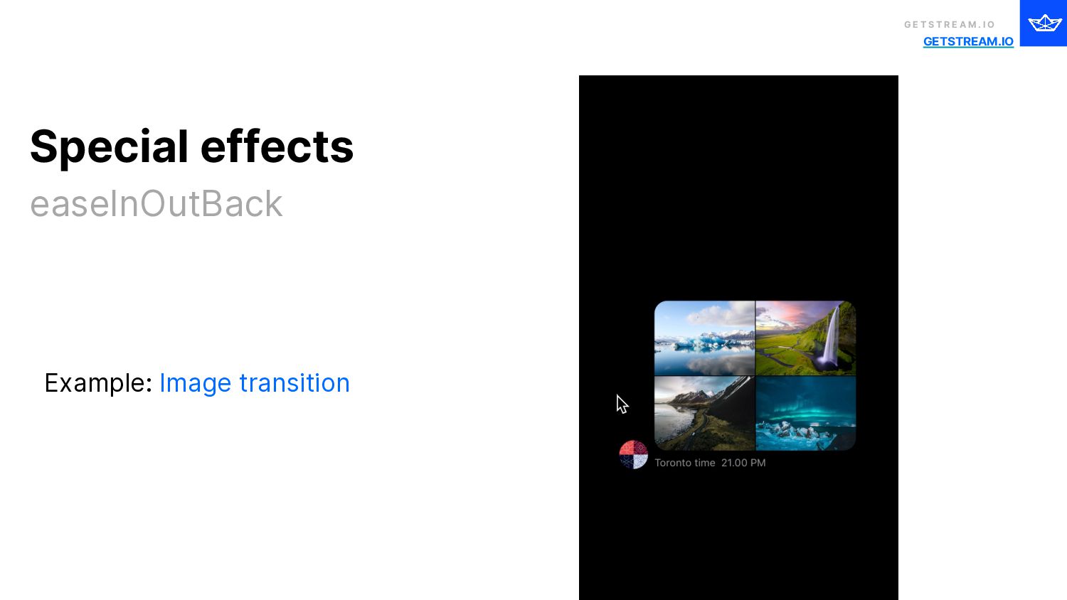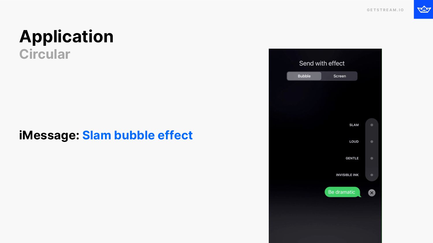 I O P R I N C I P L E S O F G R E AT I O S A N I M AT I O N S Follow through using Spring Animations Follow the principle of physics to create soft and imprecise movements Overshooting resting states Reactions: Telegram, iMessage, Stream’s SwiftUI sample app