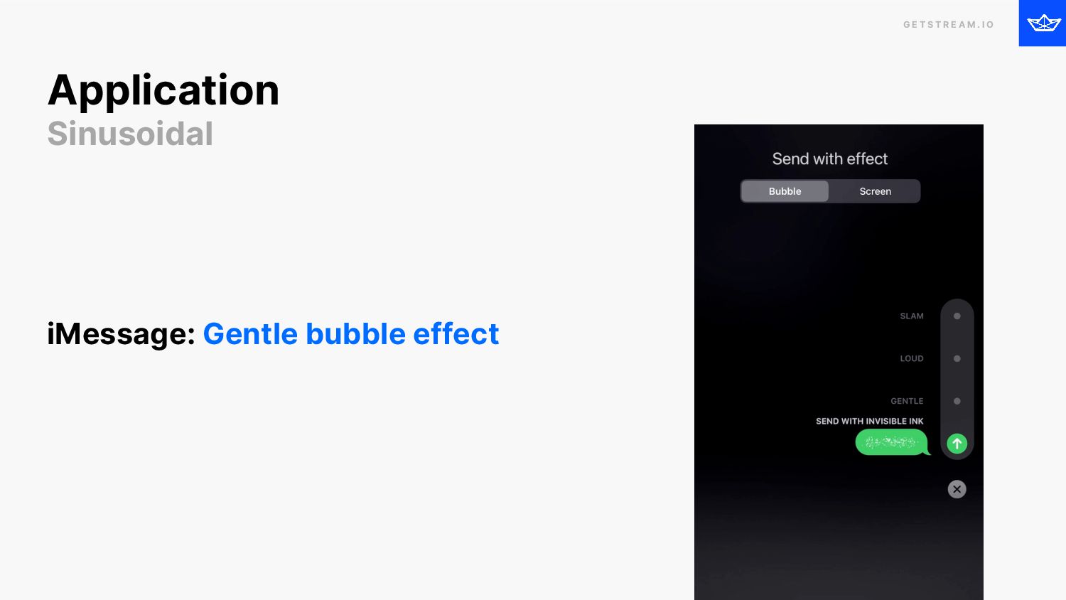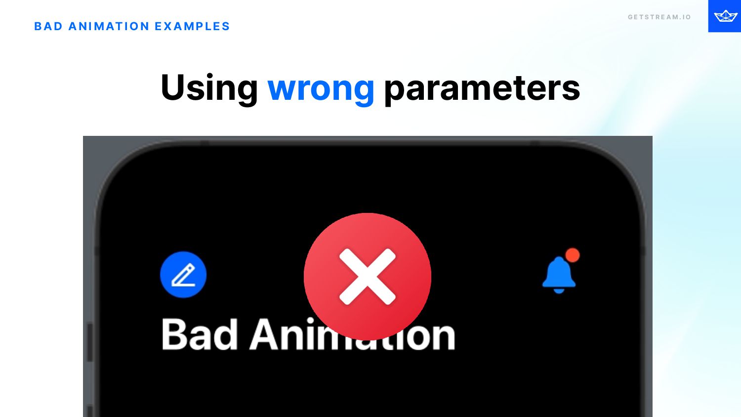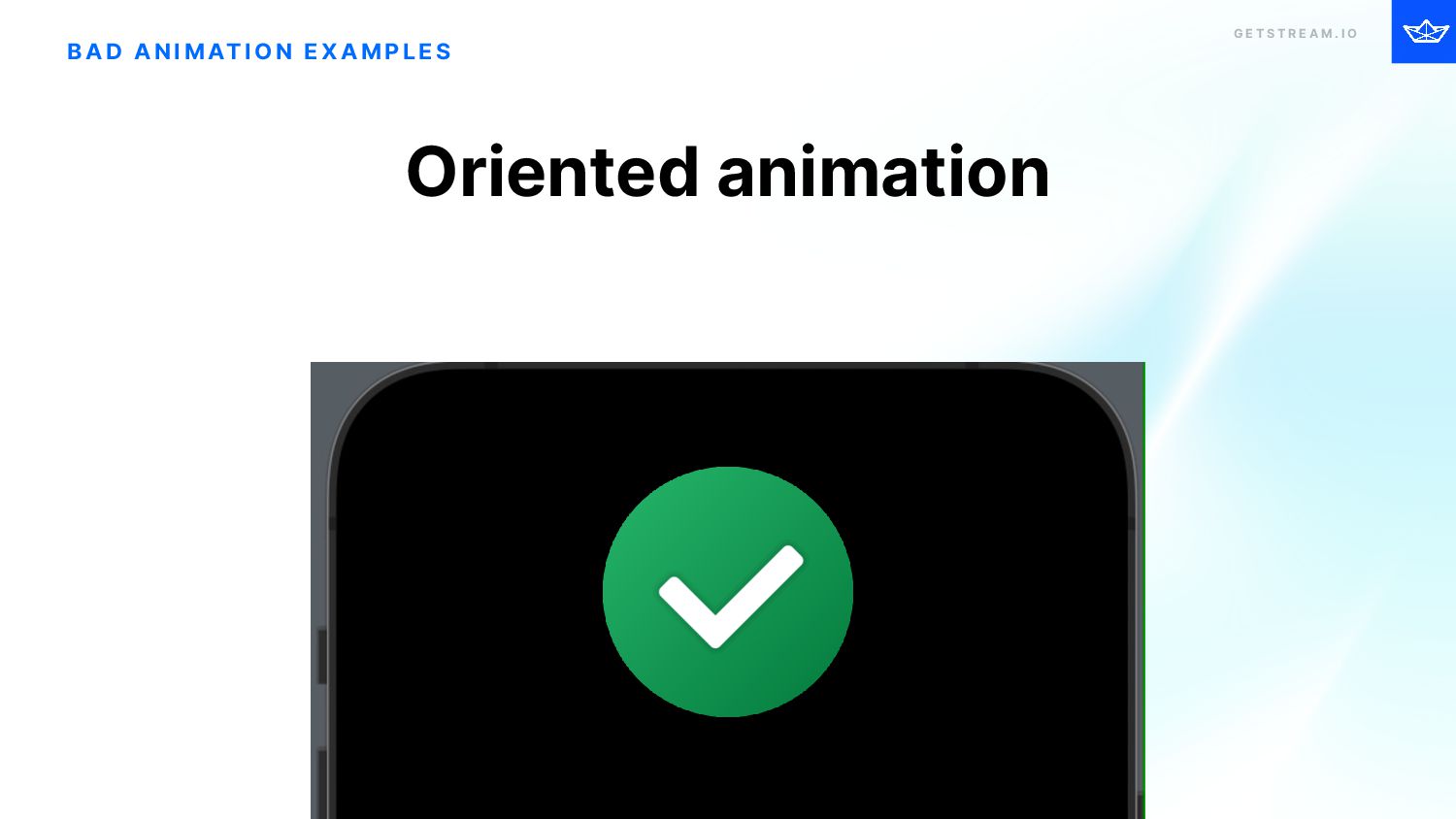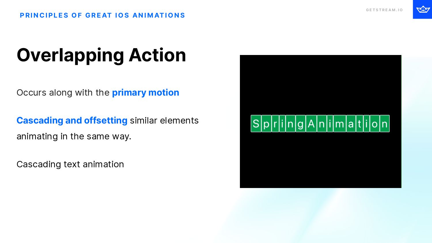 I O P R I N C I P L E S O F G R E AT I O S A N I M AT I O N S Follow through using Spring Animations Follow the principle of physics to create soft and imprecise movements Overshooting resting states Reactions: Telegram, iMessage, Stream’s SwiftUI sample app
