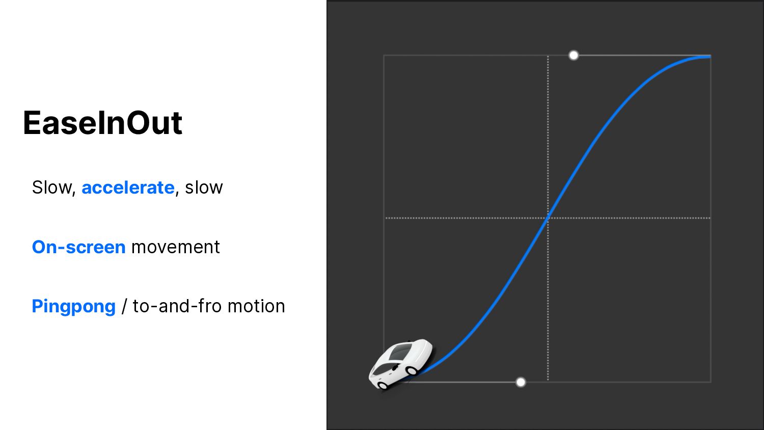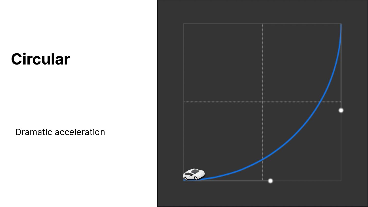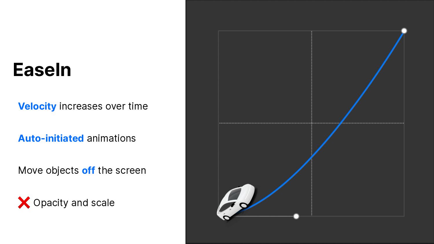 I O Time between fromValue and toValue Timing relates to duration Pacing relates to speed Differentiate great animations from terrible ones Not slower or faster than it should be Timing and Pacing