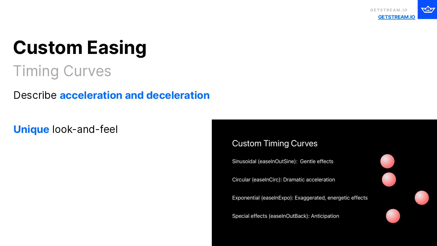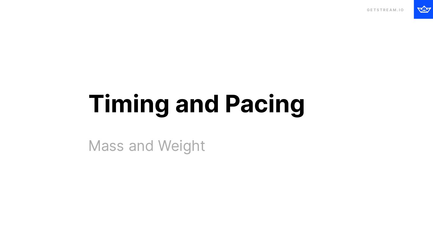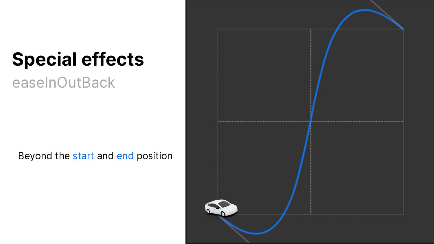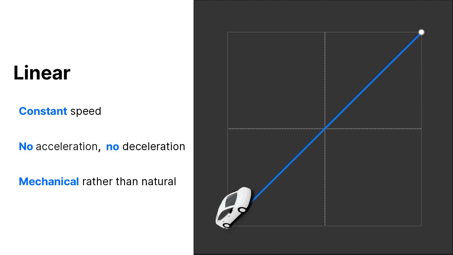 I O Time between fromValue and toValue Timing relates to duration Pacing relates to speed Differentiate great animations from terrible ones Not slower or faster than it should be Timing and Pacing