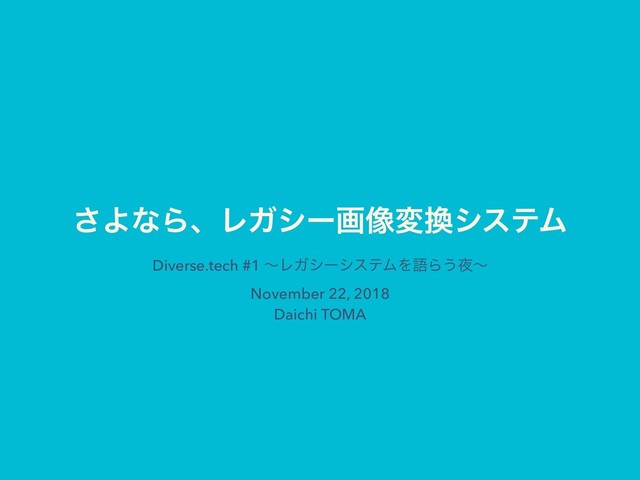 ͞ΑͳΒɺϨΨγʔը૾มγεςϜ Diverse.tech #1 ʙϨΨγʔγεςϜΛޠΒ͏ʙ November 22, 2018 Daichi TOMA