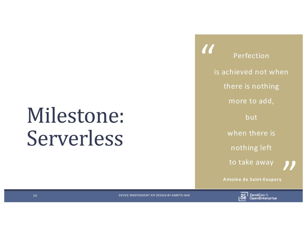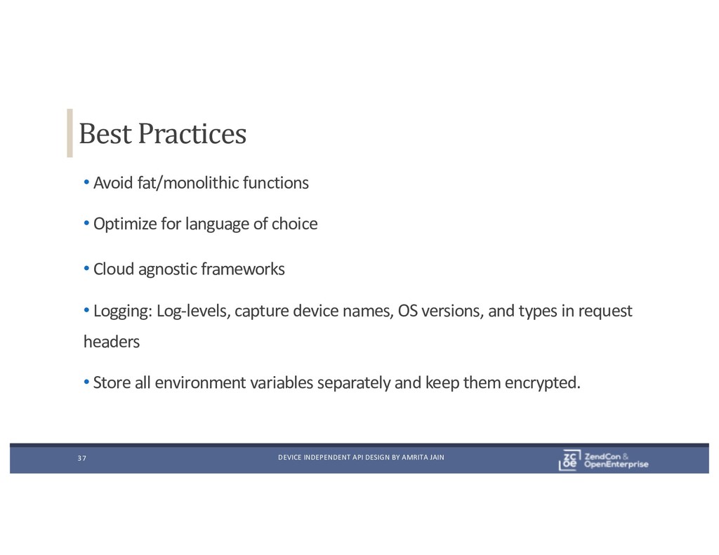With the explosion of consumer devices, designing flexible and device-independent optimized APIs has become increasingly challenging. This talk covers API design best practices for serverless microservice architectures, demonstrates core principles of microservices using sample PHP examples, and summarizes the lessons learned. This talk also covers highly-optimized API design using GraphQL to address versioning issues and device resource constraints.
