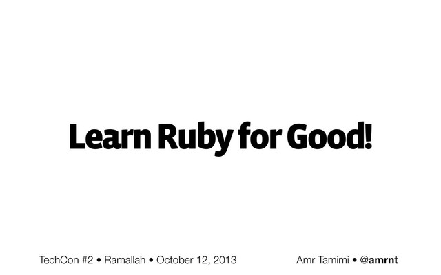 This presentation is an inspiring introduction to Ruby. Tools and ideas that came from the Ruby community.
