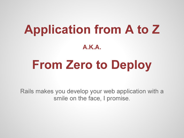 A quick introduction about Rails. Using scaffold to generate an application. Most of the audience have never heard about Ruby/Rails.