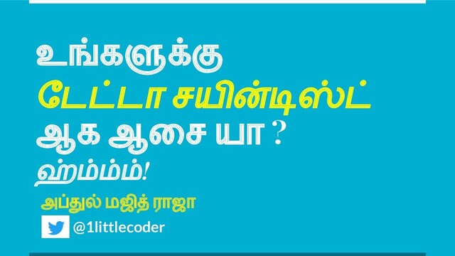 This is a Webinar to introduce a bit of Data Science and its aspects in Tamil Language, It'd also cover some tips about how can you land a job!