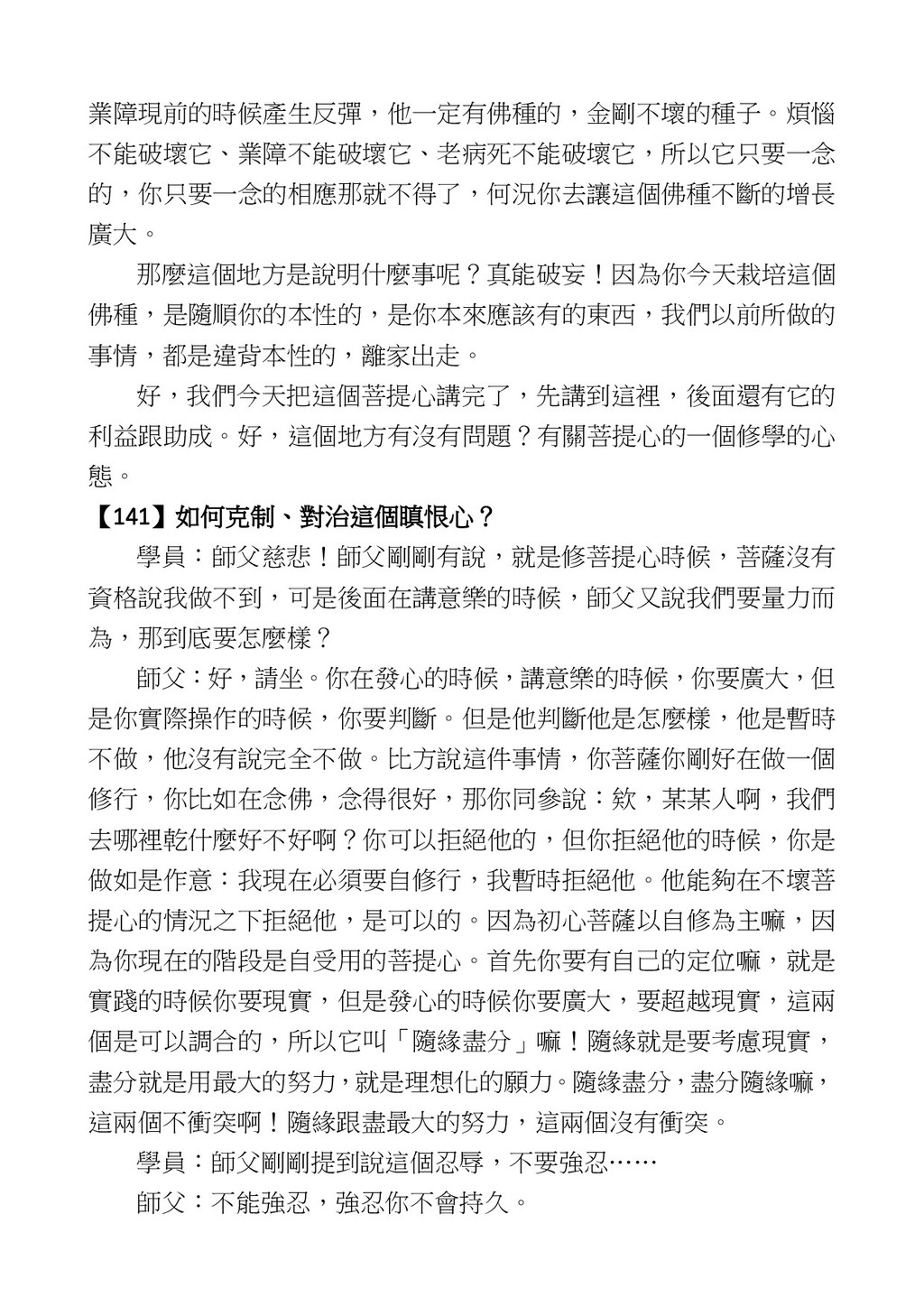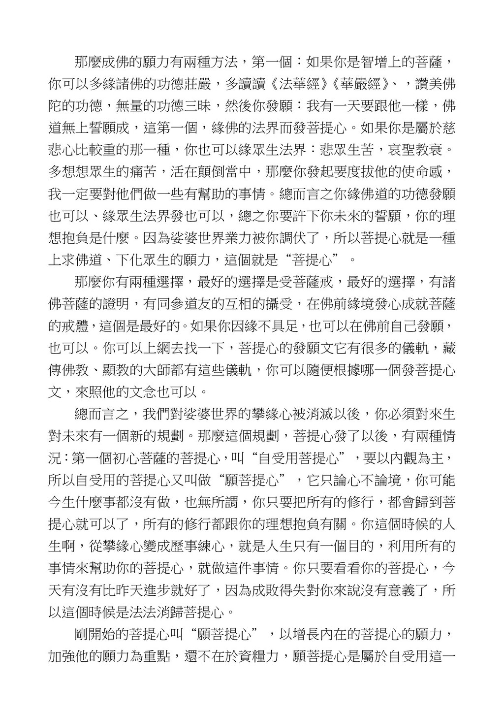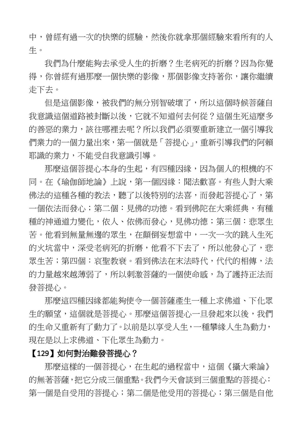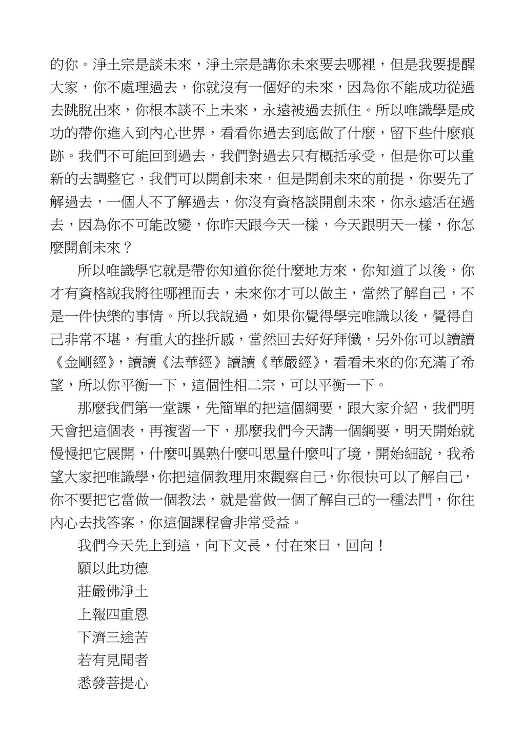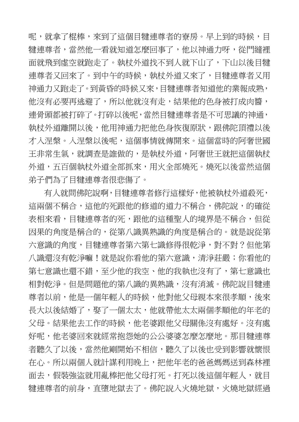 意識開始區別,就是你接受這個感受以後,你是怎麼想的?當你在痛 苦的時候,你是怎麼想?你可以選擇怨天尤人,你也可以產生自我慚 愧,所以這個第六意識,它接受到前五識的感受的刺激的時候,它產 生想像,最後想完以後落入了一種第七識的執著,最後藏到第八識變 成種子。 【12】從第六意識下手目標是改變第七識! 但是,諸位要知道在我們八識當中分成三類,第八識第七識跟前 六識,異熟、思量、了境,你們猜猜看哪一個最重要?主導性最強是 誰? 第六意識。 還有呢? 對! 第七意識最重要! 我說明一下,雖然第六意識管善惡,對不對,但第六意識有個問題,第 六意識是生滅的,第六意識如果沒有跟第七意識的執著在一起,第六意 識做不出很大的善惡,做不出來。你看我們一天打很多妄想,我們百分 之九十的妄想都沒有付諸行動,對不對?我們也曾經想要做壞事,但 是你有去做壞事嗎?沒有,因為你沒那個膽量,那個膽量是誰?也就