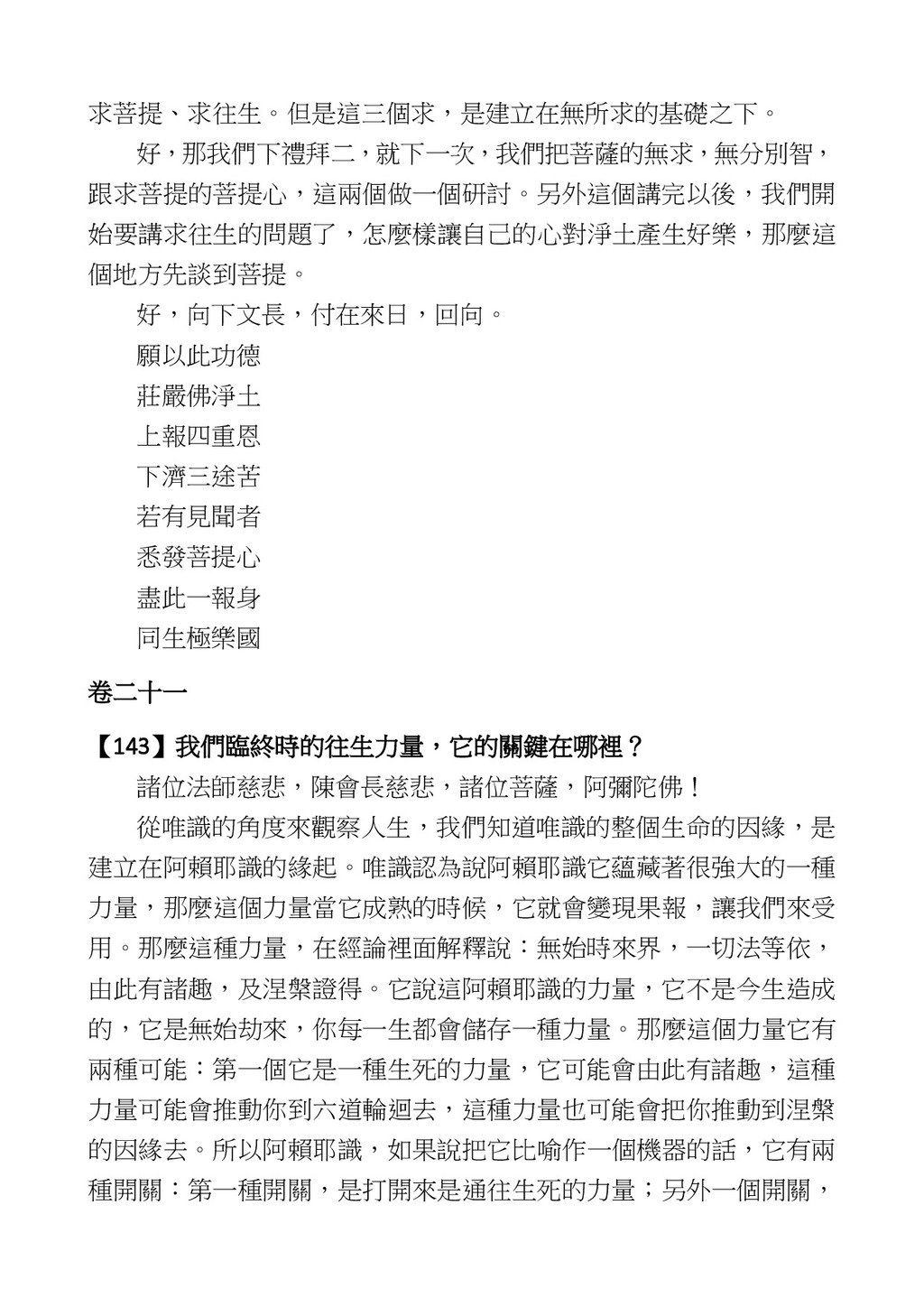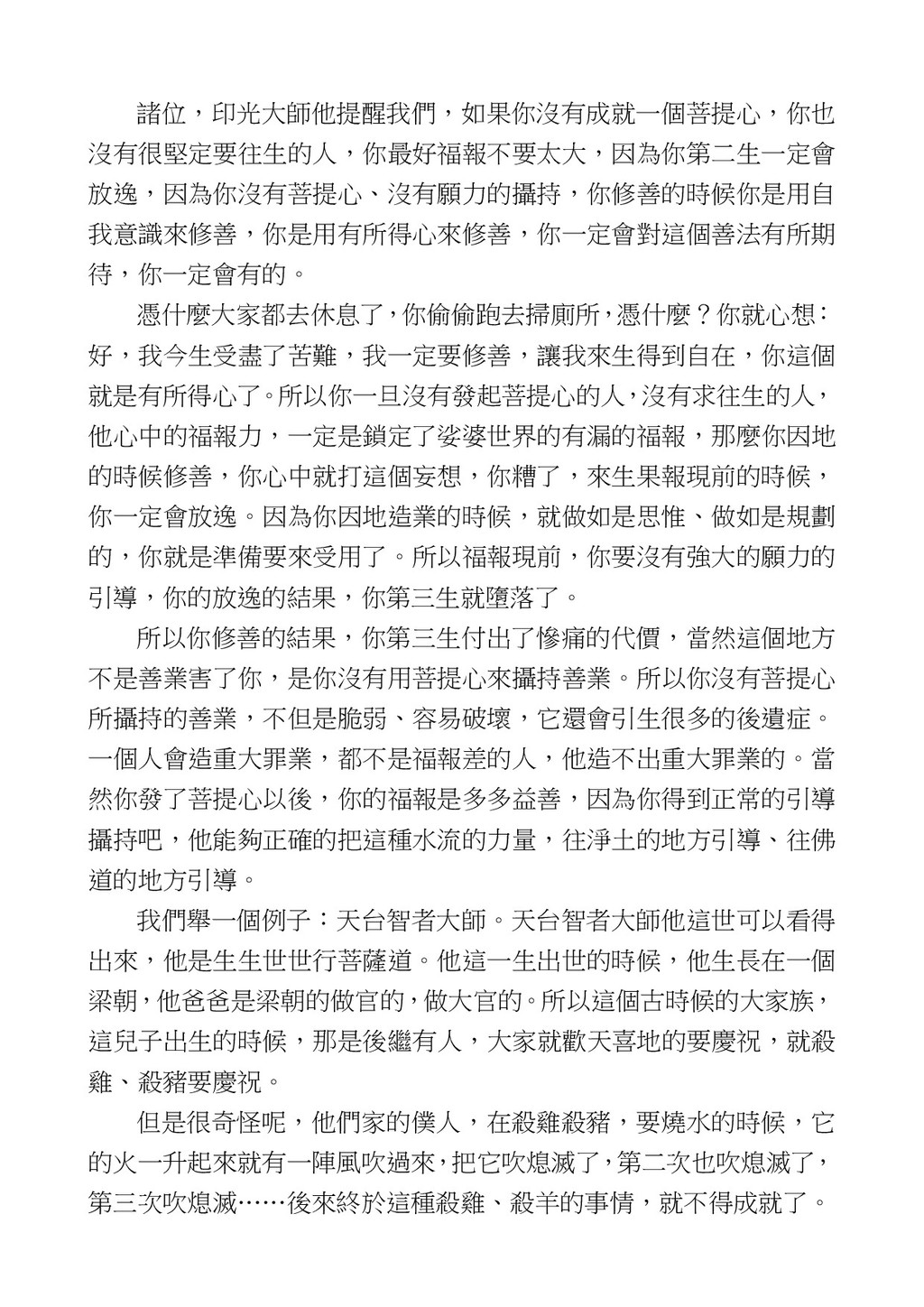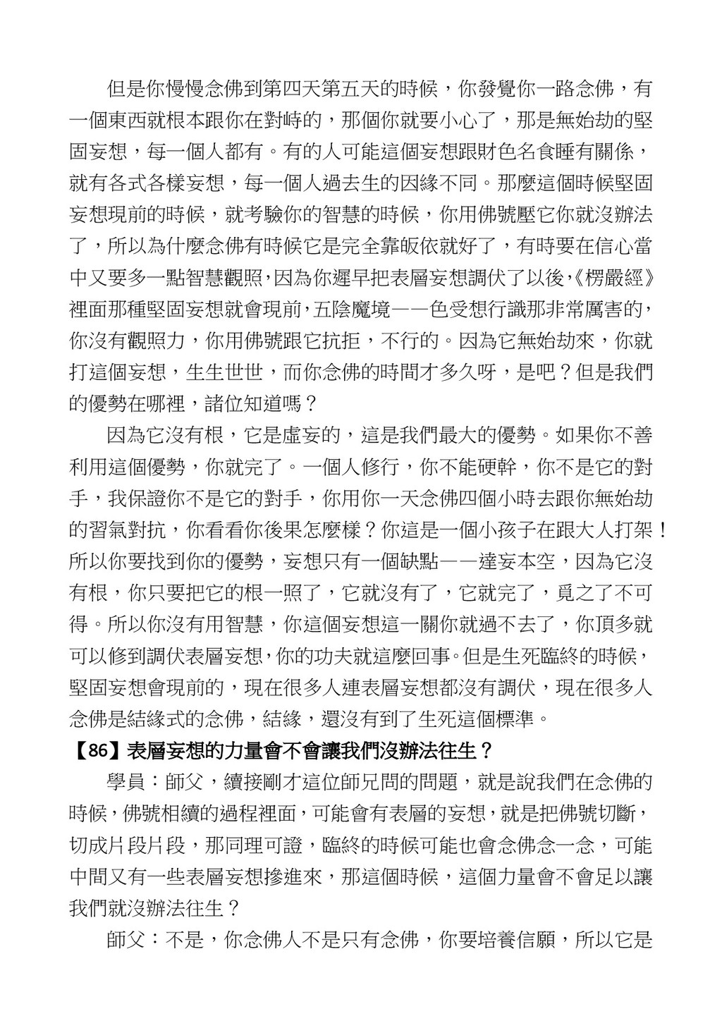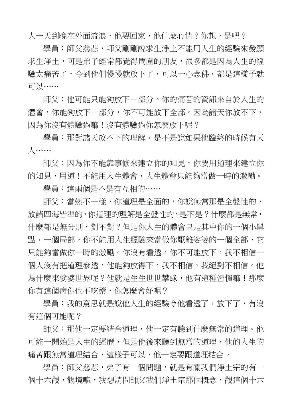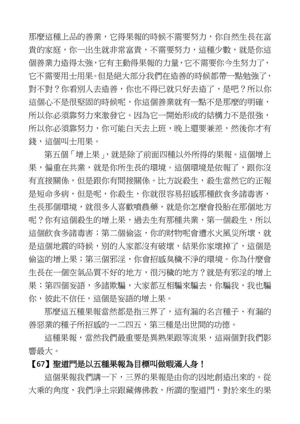 意識開始區別,就是你接受這個感受以後,你是怎麼想的?當你在痛 苦的時候,你是怎麼想?你可以選擇怨天尤人,你也可以產生自我慚 愧,所以這個第六意識,它接受到前五識的感受的刺激的時候,它產 生想像,最後想完以後落入了一種第七識的執著,最後藏到第八識變 成種子。 【12】從第六意識下手目標是改變第七識! 但是,諸位要知道在我們八識當中分成三類,第八識第七識跟前 六識,異熟、思量、了境,你們猜猜看哪一個最重要?主導性最強是 誰? 第六意識。 還有呢? 對! 第七意識最重要! 我說明一下,雖然第六意識管善惡,對不對,但第六意識有個問題,第 六意識是生滅的,第六意識如果沒有跟第七意識的執著在一起,第六意 識做不出很大的善惡,做不出來。你看我們一天打很多妄想,我們百分 之九十的妄想都沒有付諸行動,對不對?我們也曾經想要做壞事,但 是你有去做壞事嗎?沒有,因為你沒那個膽量,那個膽量是誰?也就