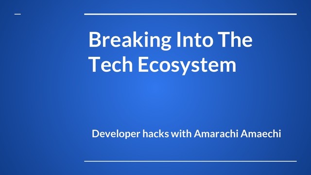 Breaking Into The Tech Ecosystem Developer hacks with Amarachi Amaechi