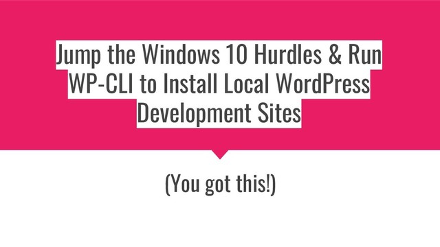 Here's a quick recipe to try out WP-CLI on Windows, for command line installation and admin of local WordPress development sites. Don't let the setup throw you--it can take a bit of patience to find where PHP and MySQL are installed within WAMP and get the environment variables edited.
