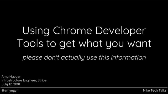 Chrome Developer Tools is magical. It lets you record network traffic, step through code, modify the DOM, and more! To learn how to use each of these features, I'll walk you through my adventures trying to trick Taylor Swift’s website into giving me concert tickets. Instead of reading through all of the JS files in her site and scrolling through hundreds of useless network activity logs, I learned how to use XHR breakpoints, filter network activity by type and domain, and recreate requests with CURL. I'll show you all of these tools and a few other tricks, and by the end of this talk, you will know how to reverse engineer any website, and manipulate it to do your bidding.