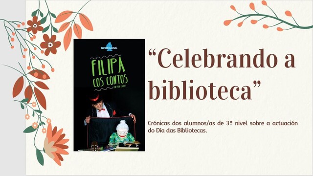 Crónicas doa alumnos/as de 3º nivel sobre a actuación para celebrar o Día das Bibliotecas.