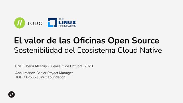 software (Link & Germonprez, 2018; Naparat et al., 2015) (2) frequency of open source software releases (Jiang et al., 2014; Schweik & English, 2012), (3) Social behaviors in a community (Crowston et al., 2006; Crowston & Howison, 2006; Crowston & Howison, 2011). TODO & CHAOSS’s OSPO Metrics Working Group (WG) (1) Evaluating open source software (2) follow best practices to develop more secure software (3) set up environment OpenSSF’s Best Practices for Open Source Developers Working Group (WG) • Infrastructure • Documentation and guidelines ◦ Contribution ◦ Governance ◦ CoC ◦ Licence ◦ COD • Quality checks & Automation • Project governance THE ROLE OF AN OSPO IN OSS SUSTAINABILITY ¿Quién está detrás de la gestión de todos estos procesos dentro de las organizaciones? Hay organizaciones que crean Oficinas Open Source como el vehículo para ayudar con los retos de sostenibilidad en los proyectos OSS del ecosistema Cloud