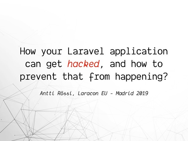 In this talk I go through 4 common development flaws and mistakes that can lead your Laravel application being compromised in production.