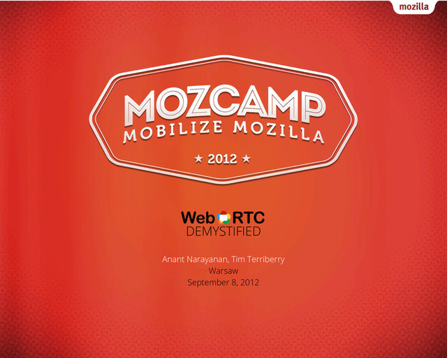 FF18 for turning it on by default • Targeting PeerConnection for FF18, currently available on alder for experimental purposes • Current focus is on shipping a usable, “1.0” version of both the above https://wiki.mozilla.org/Media/WebRTC