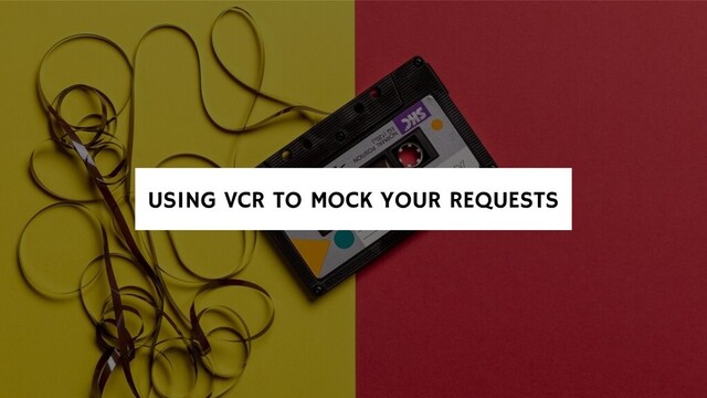 that requires an external request, you use .use_cassette method to state that you want VCR to deal with that with a “cassette file” • If there is no fixture yet, VCR is configured by default to create one (this time making a real request) so it can be used for future references. HOW TO USE VCR?