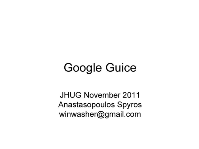 an excellent piece of software but like everything in the java world it has made configuration first priority. You can configure it in many ways to do many things implicit or explicit •It does not enforce or suggest a one true way to use it. J2EE is the standard with all the pros and cons. •Why do we need to standardize everything? Guice is just a tool that can help you build applications. It does not try to recreate the world and it does not try to dominate your application. •Designed to support and favor a particular good code style