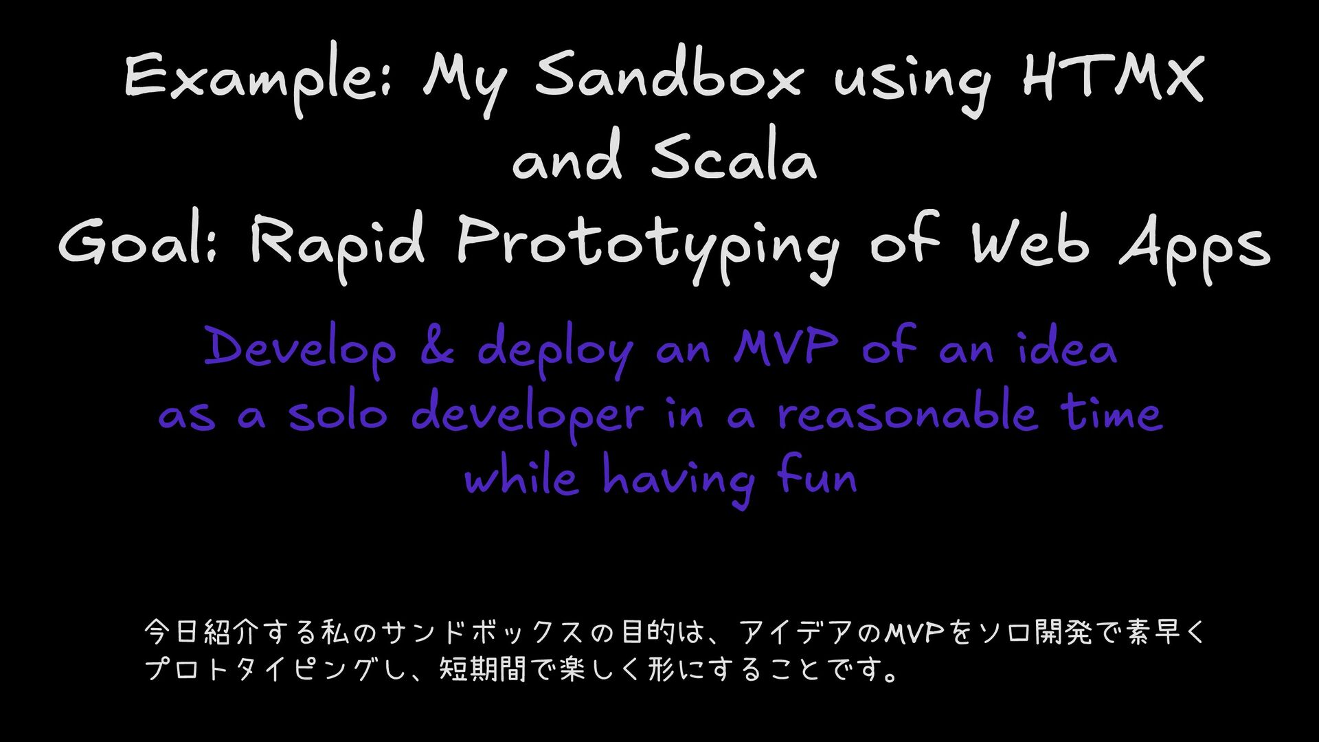 of Web Apps Develop & deploy an MVP of an idea as a solo developer in a reasonable time while having fun 今日紹介する私のサンドボックスの目的は、アイデアのMVPをソロ開発で素早く プロトタイピングし、短期間で楽しく形にすることです。