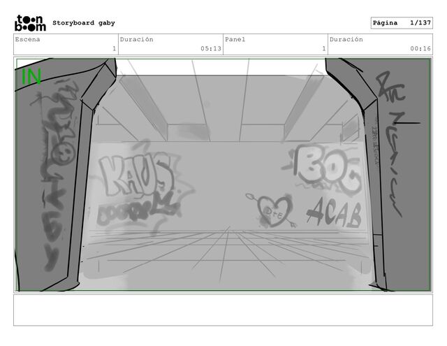 Escena 1 Duración 05:13 Panel 1 Duración 00:16 Storyboard gaby