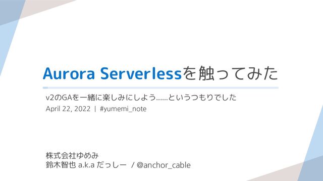 Aurora Serverless は、Amazon Auroraのオンデマンドの Auto Scaling 設定です。 アプリケーションニーズに応じて、自動的に起動、シャットダウン、および容量を拡大または縮小し ます。Aurora Serverless を使用すると、データベース容量を管理せずにクラウド内でデータベース を実行できます。 (中略) Aurora Serverless では、データベースエンドポイントを作成し、必要に応じてデータベースの容量 範囲を指定し、アプリケーションを接続するだけです。 公式ドキュメントより