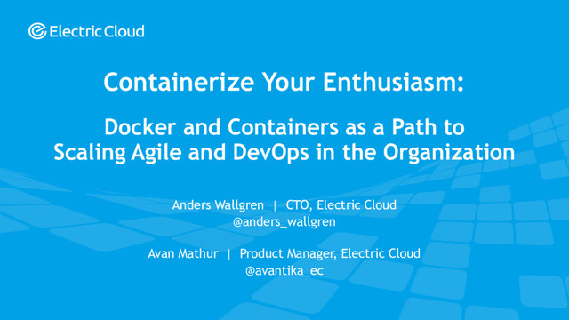 - The implications Containers have on your DevOps processes and Agile implementation