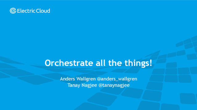 Watch the video of the session at: http://electric-cloud.com/blog/2015/12/orchestrating-all-the-things-watch-the-video-of-my-talk-at-velocityconf/