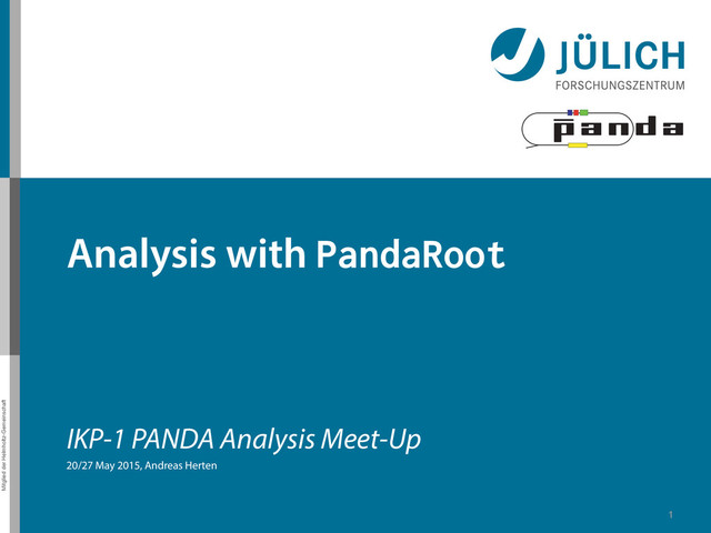 digi.C reco.C pid.C Sim & Reco Analysis ana.C eval.C qa.qaP4("beam", ini, ntpDp); qa.qaCand("DplusPos", dpluslist[j], ntpDp); qa.qaComp("Dplus", dpluslist[j], ntpDp); qa.qaMcDiff("fVtxDplus", dplusfit, ntpDp); • qaP4: Stores four-momentum – pi, p, E, theta, phi, m – qaP4Cms also existing • qaCand: qaP4 and spatial info – charge – x, y, z, l – PDG ID • qaComp: alle the above, plus more – For composite candidates – Runs recursively down the particle tree – Calls also: qaPoca, qaVtx • qaMcDiff: Differences to MC – Δx, Δp, ΔE – pullx, pullp, pullE – σx, σp, σE – Make cross-check! That’s the one you need! • qaKs0, qaPi0 • qaEventShape • qaDalitz • qaPid • qaTrk • qaEmc, qaMvd, qaStt, qaGem, qaDrc, qaDsc, qaRich, qaTof, qaMuo