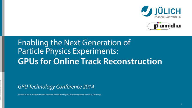 2014, Andreas Herten (Institute for Nuclear Physics, Forschungszentrum Jülich, Germany) Enabling the Next Generation of Particle Physics Experiments: GPUs for Online Track Reconstruction