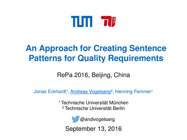 2016, Beijing, China September 13, 2016 Jonas Eckhardt1, Andreas Vogelsang2, Henning Femmer1 1 Technische Universität München 2 Technische Universität Berlin @andivogelsang