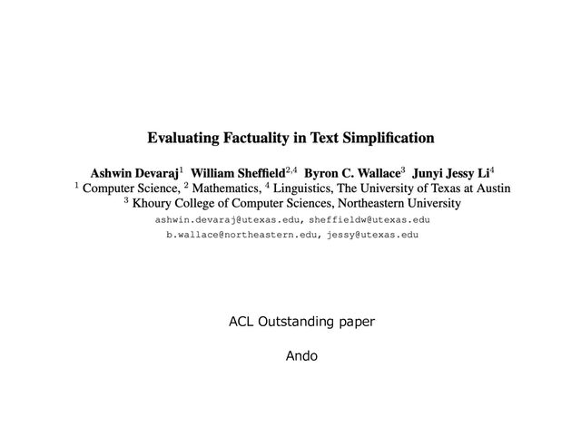 (読み会)Evaluating Factuality in Text Simplification
