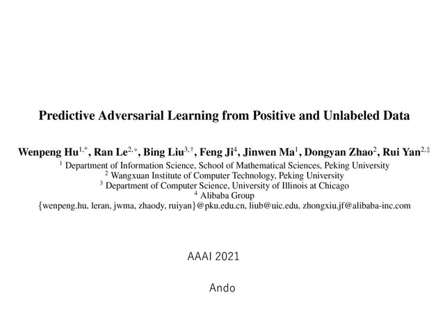 • Discriminator: Classifierのopposite distributionと近くなるように - II can cause unbalanced training between positive and negative examples and lead to high precision and low recall. To this end, we propose the term marked III which can eliminate the concern 7 Proposed PAN