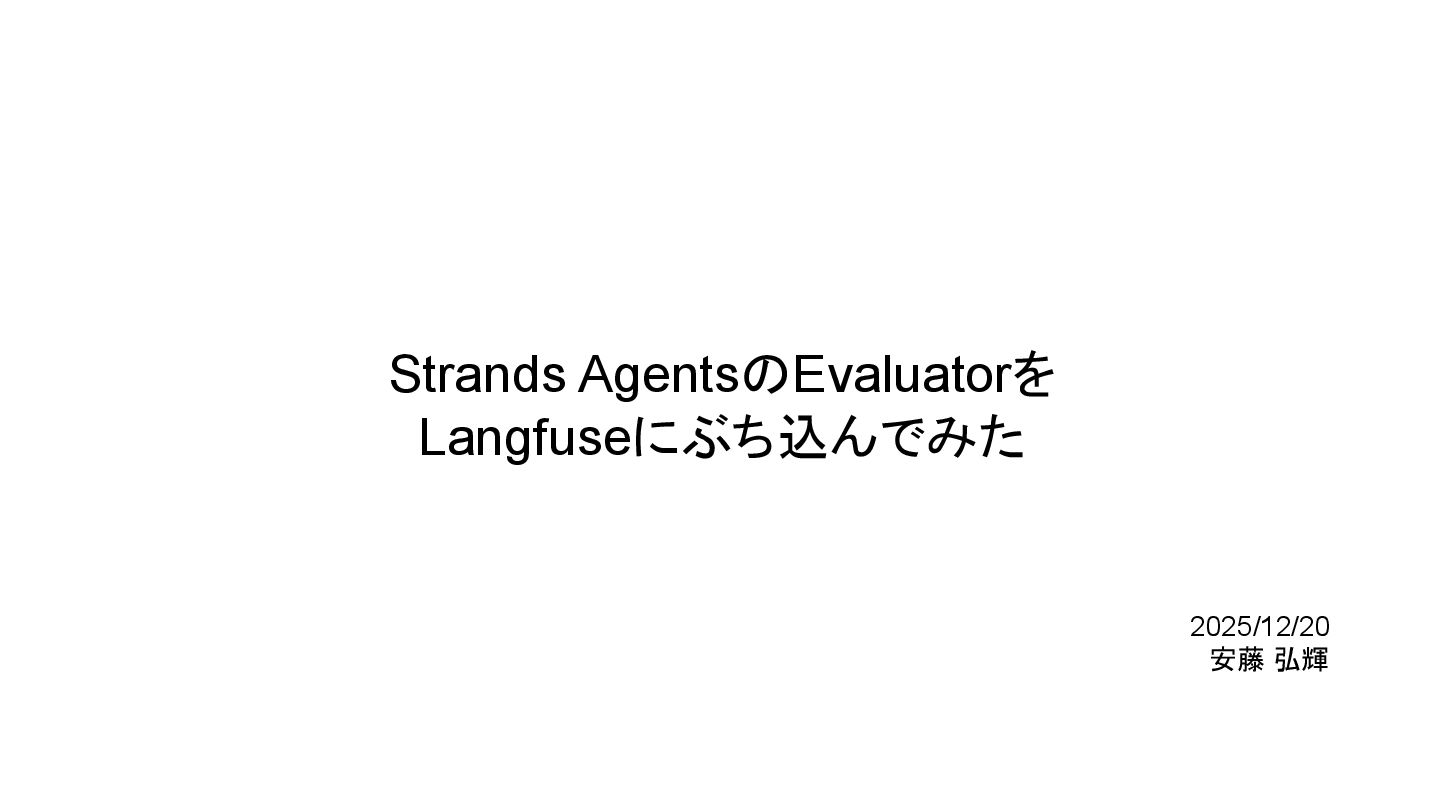 Strands AgentsのEvaluatorを Langfuseにぶち込んでみた 2025/12/20 安藤 弘輝