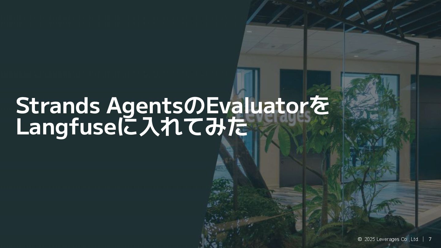7 © 2025 Leverages Co., Ltd. Strands AgentsのEvaluatorを Langfuseに入れてみた