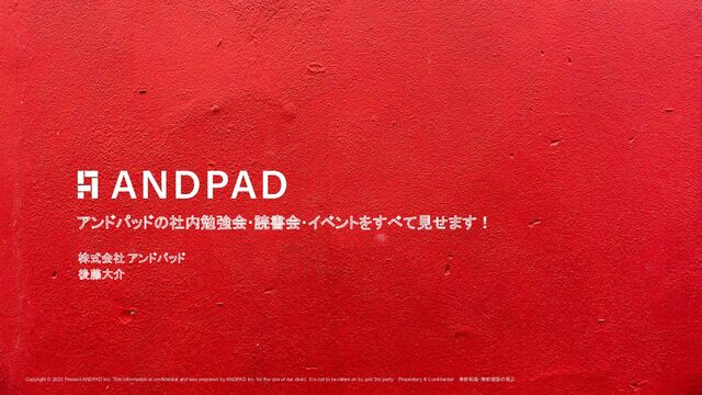 and was prepared by ANDPAD Inc. for the use of our client. It is not to be relied on by and 3rd party. Proprietary & Confidential 無断転載・無断複製の禁止 アンドパッドの社内勉強会・読書会・イベントをすべて見せます! 株式会社 アンドパッド 後藤大介