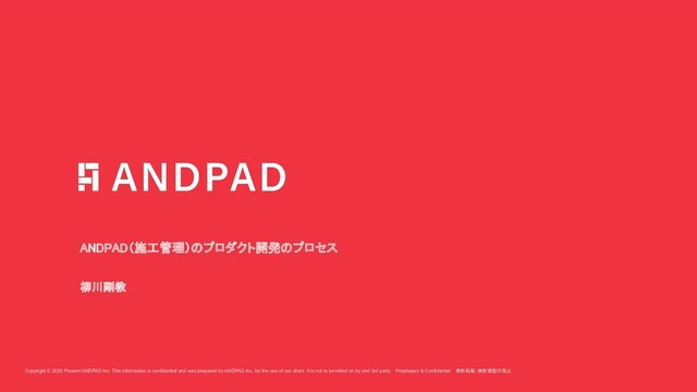 and was prepared by ANDPAD Inc. for the use of our client. It is not to be relied on by and 3rd party. Proprietary & Confidential 無断転載・無断複製の禁止 ANDPAD(施工管理)のプロダクト開発のプロセス 柳川剛教
