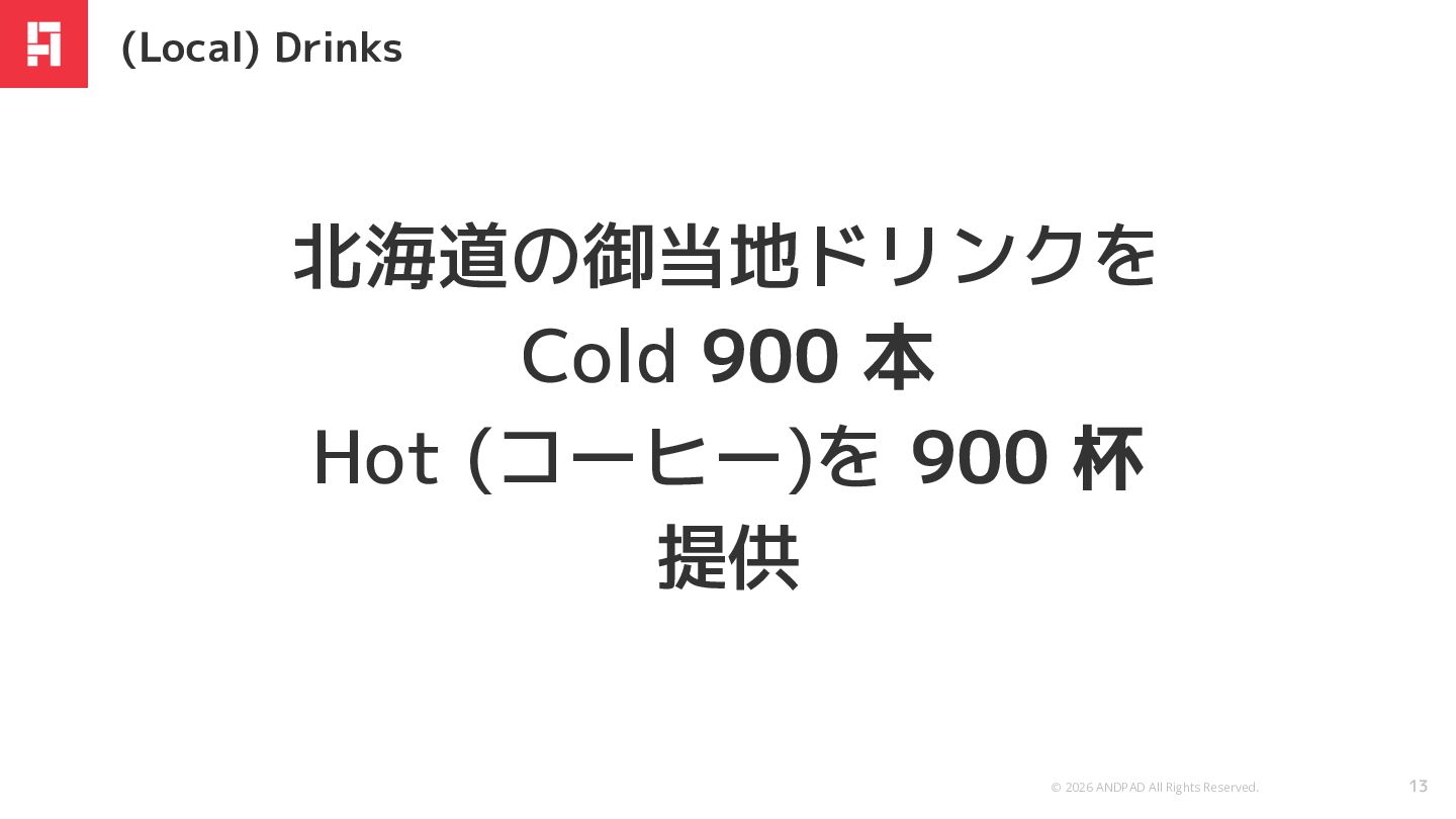 © 2026 ANDPAD All Rights Reserved. 13 (Local) Drinks 北海道の御当地ドリンクを