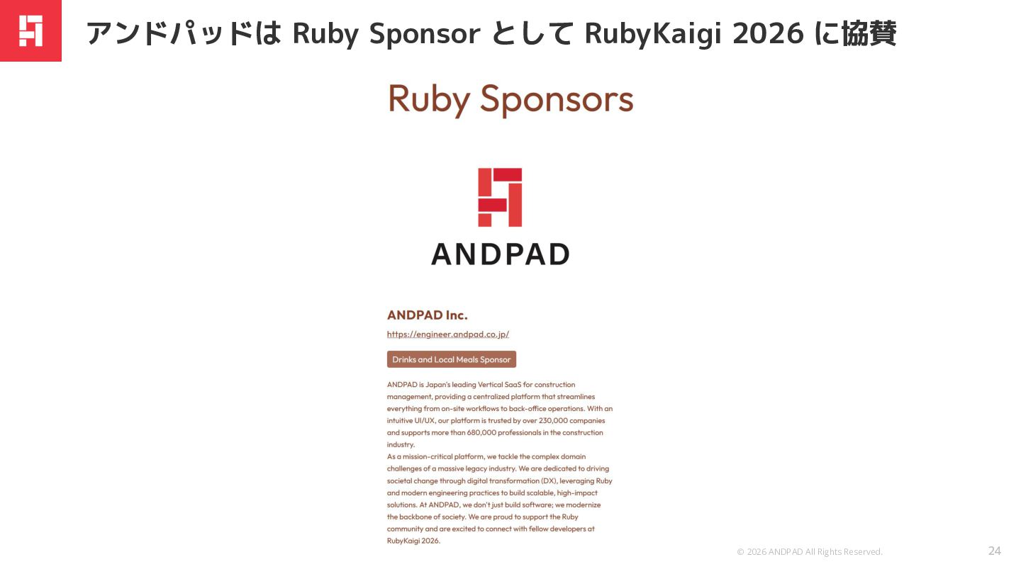 © 2026 ANDPAD All Rights Reserved. 24 アンドパッドは Ruby Sponsor