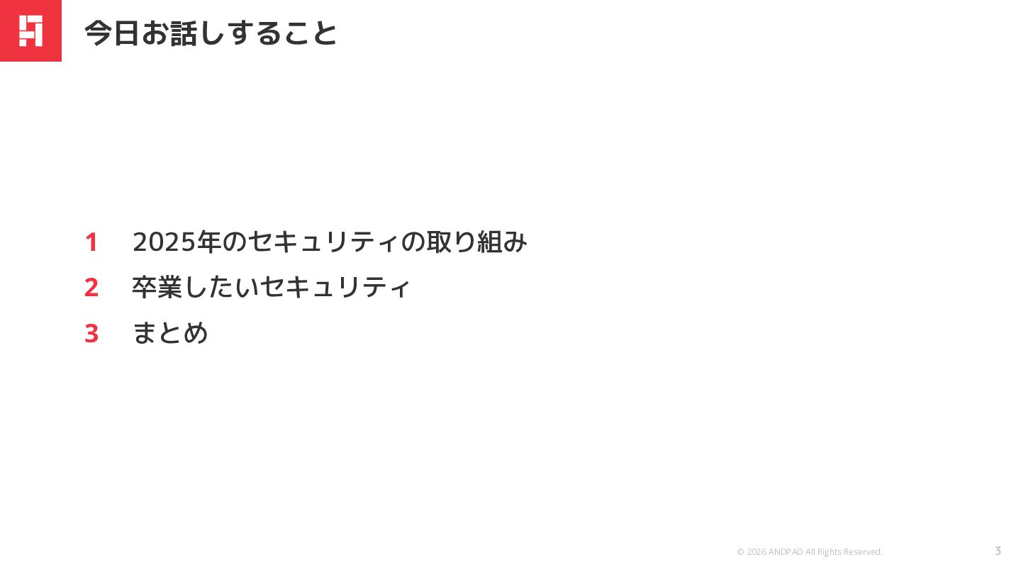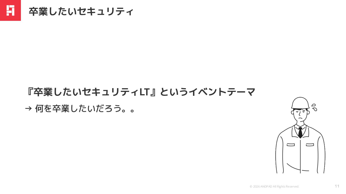 © 2026 ANDPAD All Rights Reserved. Confidential 『卒業したいセキュリティLT』というイベントテーマ → 何を卒業したいだろう。。