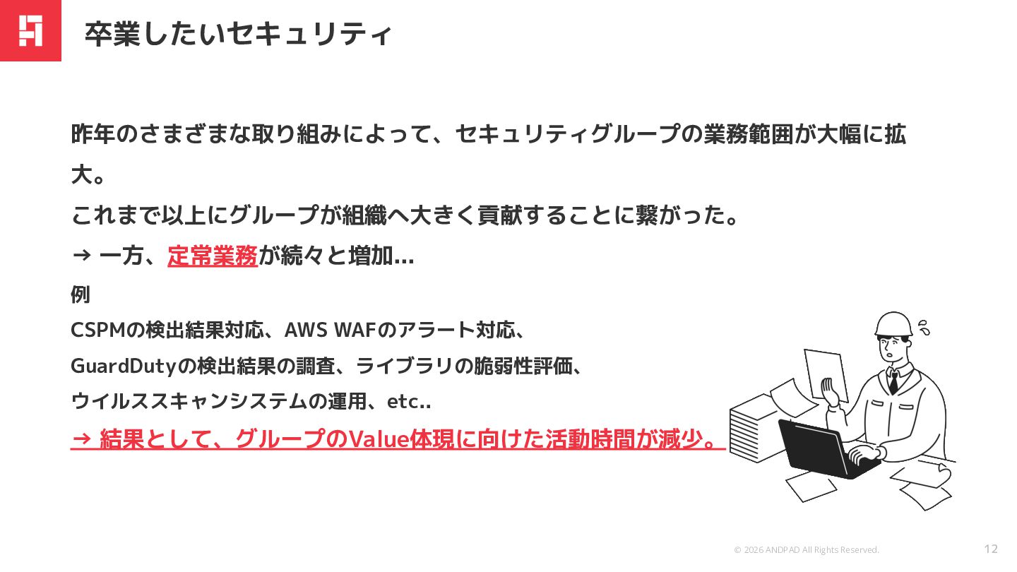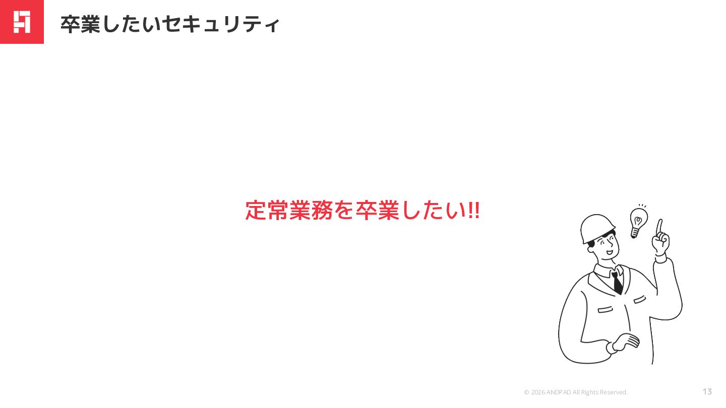 © 2026 ANDPAD All Rights Reserved. Confidential 定常業務を卒業したい!! 卒業したいセキュリティ 13