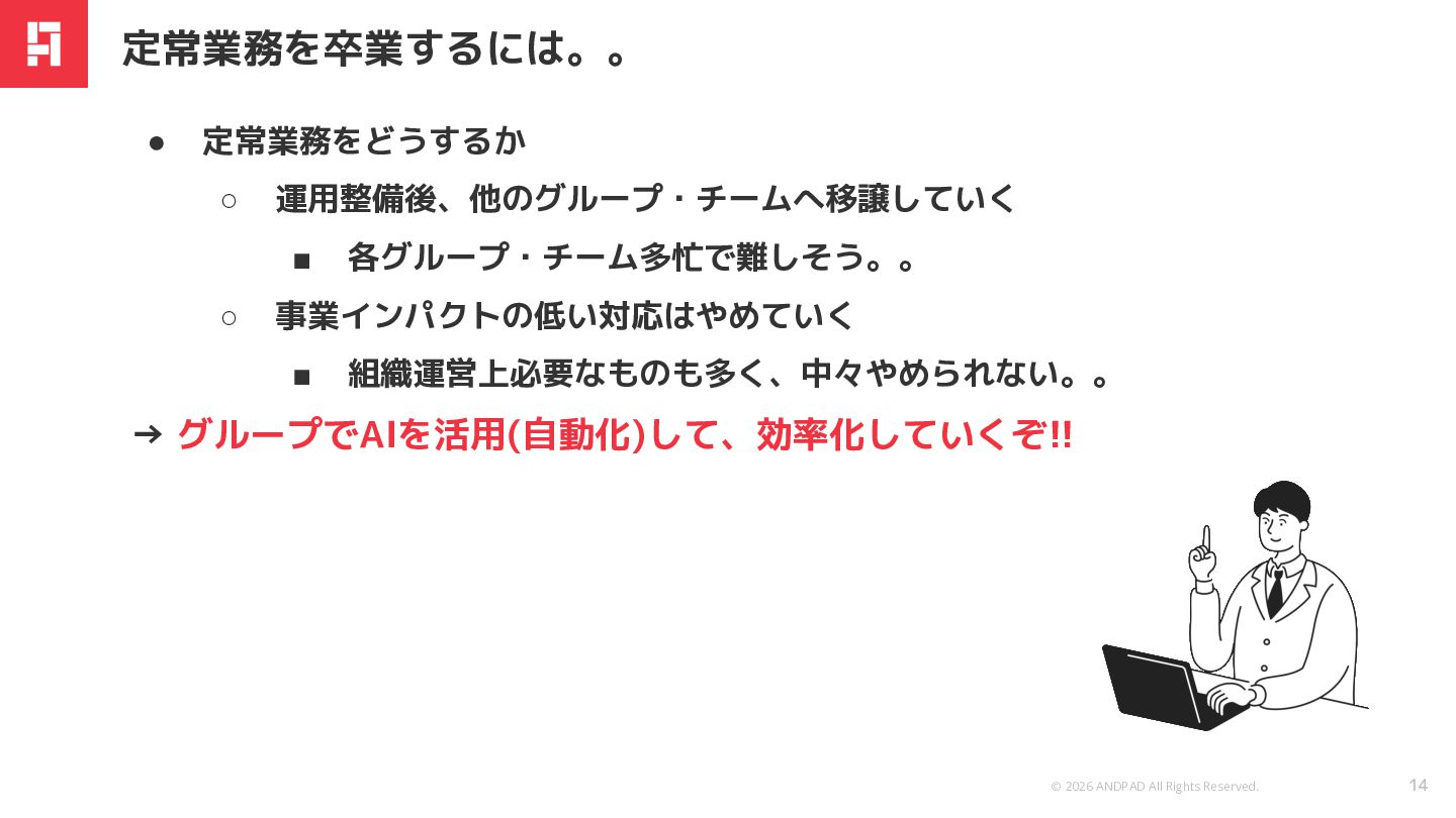 © 2026 ANDPAD All Rights Reserved. Confidential • 定常業務をどうするか ◦