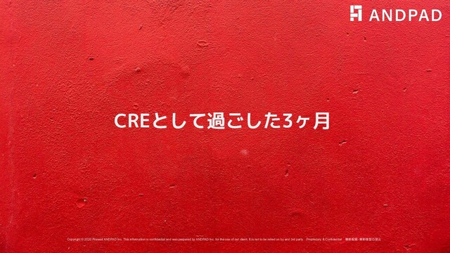 and was prepared by ANDPAD Inc. for the use of our client. It is not to be relied on by and 3rd party. Proprietary & Confidential 無断転載・無断複製の禁止 CREとして過ごした3ヶ月