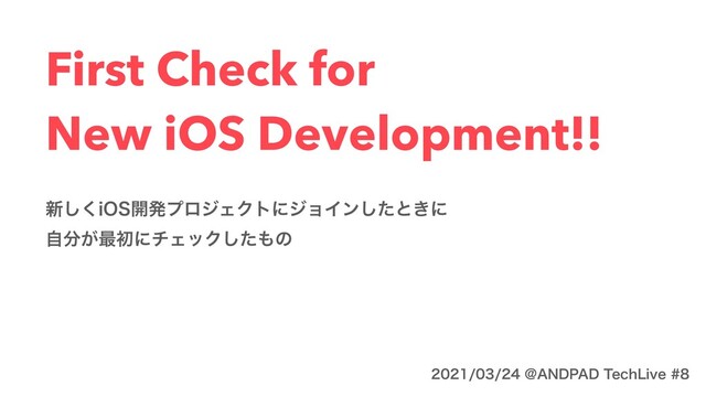 First Check for New iOS Development!! ৽͘͠J04։ൃϓϩδΣΫτʹδϣΠϯͨ͠ͱ͖ʹ ͕ࣗ࠷ॳʹνΣοΫͨ͠ͷ !"/%1"%5FDI-JWF