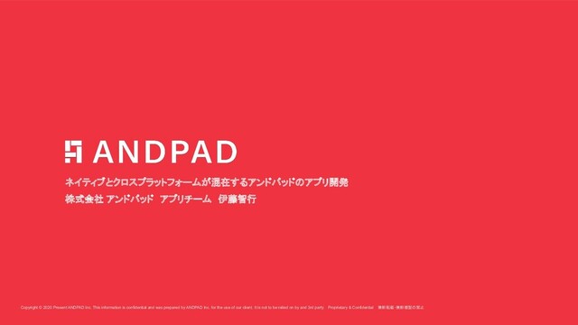 and was prepared by ANDPAD Inc. for the use of our client. It is not to be relied on by and 3rd party. Proprietary & Confidential 無断転載・無断複製の禁止 ネイティブとクロスプラットフォームが混在するアンドパッドのアプリ開発 株式会社 アンドパッド アプリチーム 伊藤智行