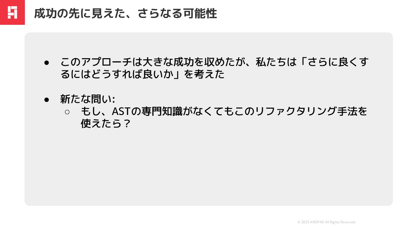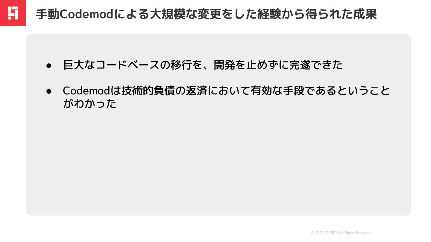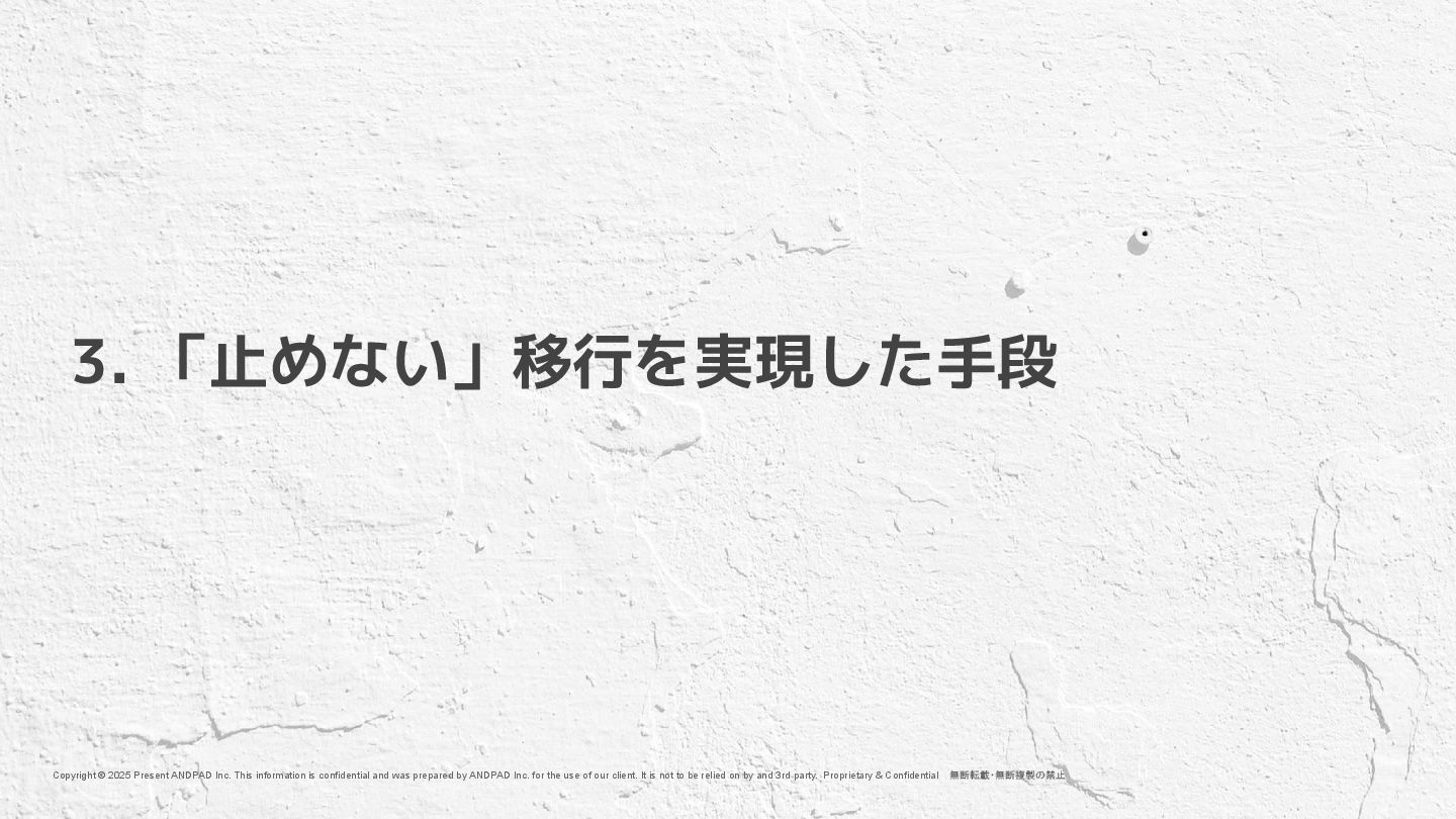 and was prepared by ANDPAD Inc. for the use of our client. It is not to be relied on by and 3rd party. 無断転載・無断複製の禁止 Confidential We are Hiring !! もっとアンドパッドの開発組織が知りたい方へ https://engineer.andpad.co.jp/ 技術スタックや募集ポジションを 掲載してます!