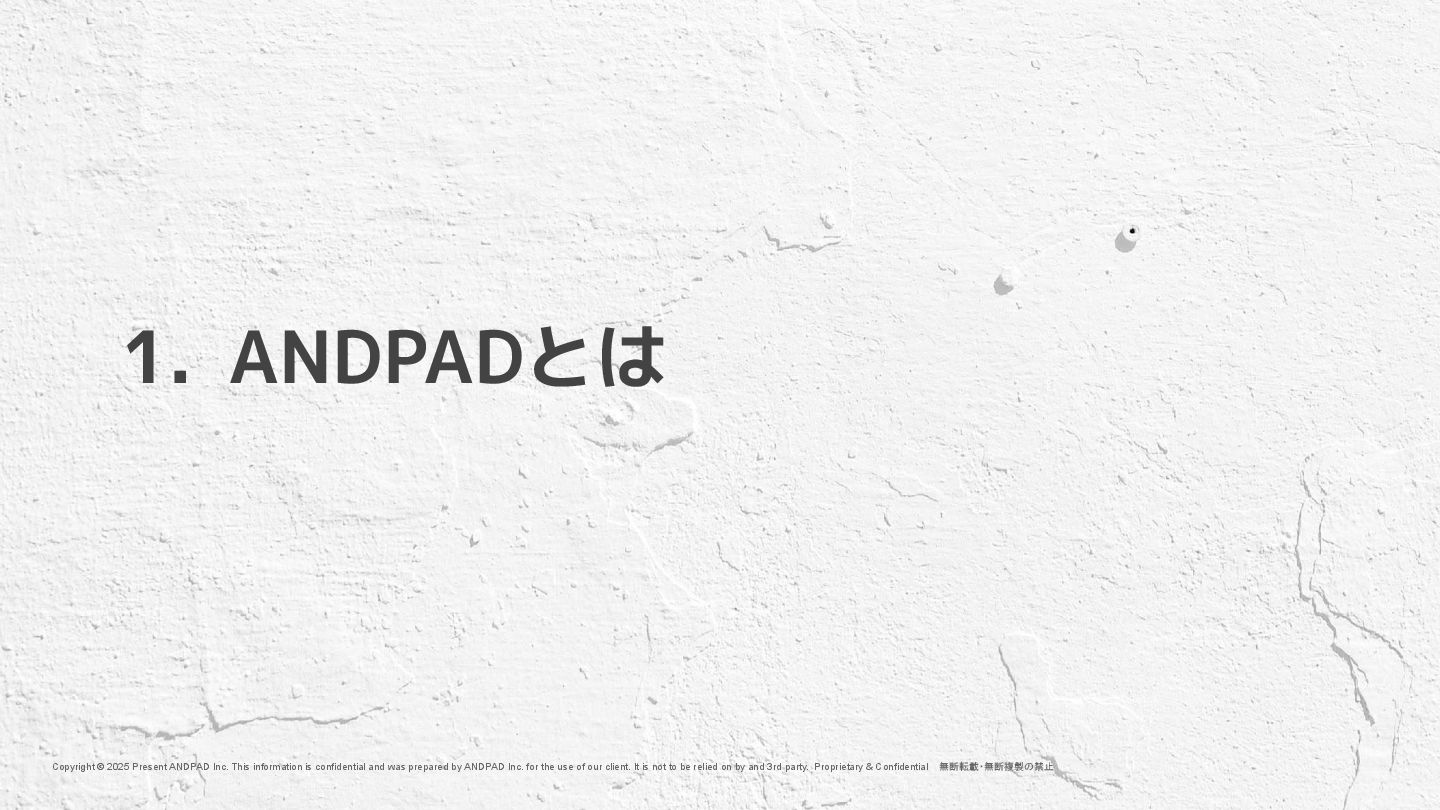 is confidential and was prepared by ANDPAD Inc. for the use of our client. It is not to be relied on by and 3rd party. Proprietary & Confidential 無断転載・無断複製の禁止