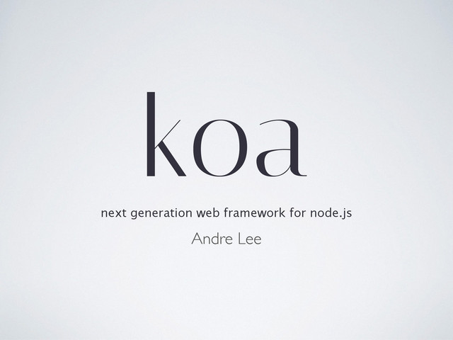 • Application • To provide high level "sugar" at the otherwise low-level middleware layer • Cascading • Settings • app.listen(...) • app.callback() • app.use(function)